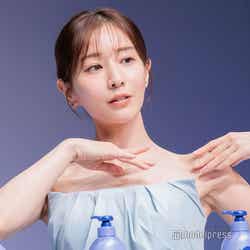 シミ予防に関する話題では「最近、本当に紫外線が強い」とした上で、「年齢を重ねてみないと分からなかったんですけど、焼けて白く戻るんだけど、でもなんかちょっと斑点みたいな(ものが残る)。『これってなんなんだろう』と思ってたら、『シミですよ』と言われて、ギョッとしたんです。『お体にもやっぱりシミってできるんだ』と思った」と告白。「背中とかも本当は満遍なく塗りたいところですけど、届く範囲で頑張ってやってます」とボディケアへの意識を口にした。普段はどのようなケアを行っているのかと問われると「実際のところは、すごく簡単に済ませてます」と告白。「(同商品は)美容液成分が配合されているという安心感もあるので、とにかくお風呂から上がって、まだ体に湿度が残っている状態の時に、サッと塗り込むっていう感じです」と説明した。