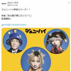 お笑い芸人の小籔千豊(ドラム)、野性爆弾のくっきー!(ベース)、現代音楽家の新垣隆(キーボード) バンド・tricotとしても活動するイッキュウ(ボーカル)、川谷絵音(ギター・プロデュース)の5人からなるジェニーハイ。公式サイトでは「現在配信中の楽曲『あの夏が癖になっていく』をもちまして、ワーナーミュージック・ジャパンとの契約が終了となりました」と報告し「今後の活動継続については現時点で未定となっております。また、9月13日出演の『KOYABU SONIC 2025』以降、ライブ出演予定はなく、今回の『KOYABU SONIC 2025』のステージが、ジェニーハイとして皆さまにお届けする最後のライブとなる可能性がございます」と伝えている。「2018年の結成以来、変わらぬご声援を賜りましたこと、心より御礼申し上げます。また皆さまとお会いできる日を、メンバー一同楽しみにしております。『KOYABU SONIC 2025』の会場で、皆さまにお目にかかれることを心より楽しみにしております」と感謝とともに「KOYABU SONIC 2025」への出演に期待を込めた。(modelpress編集部)