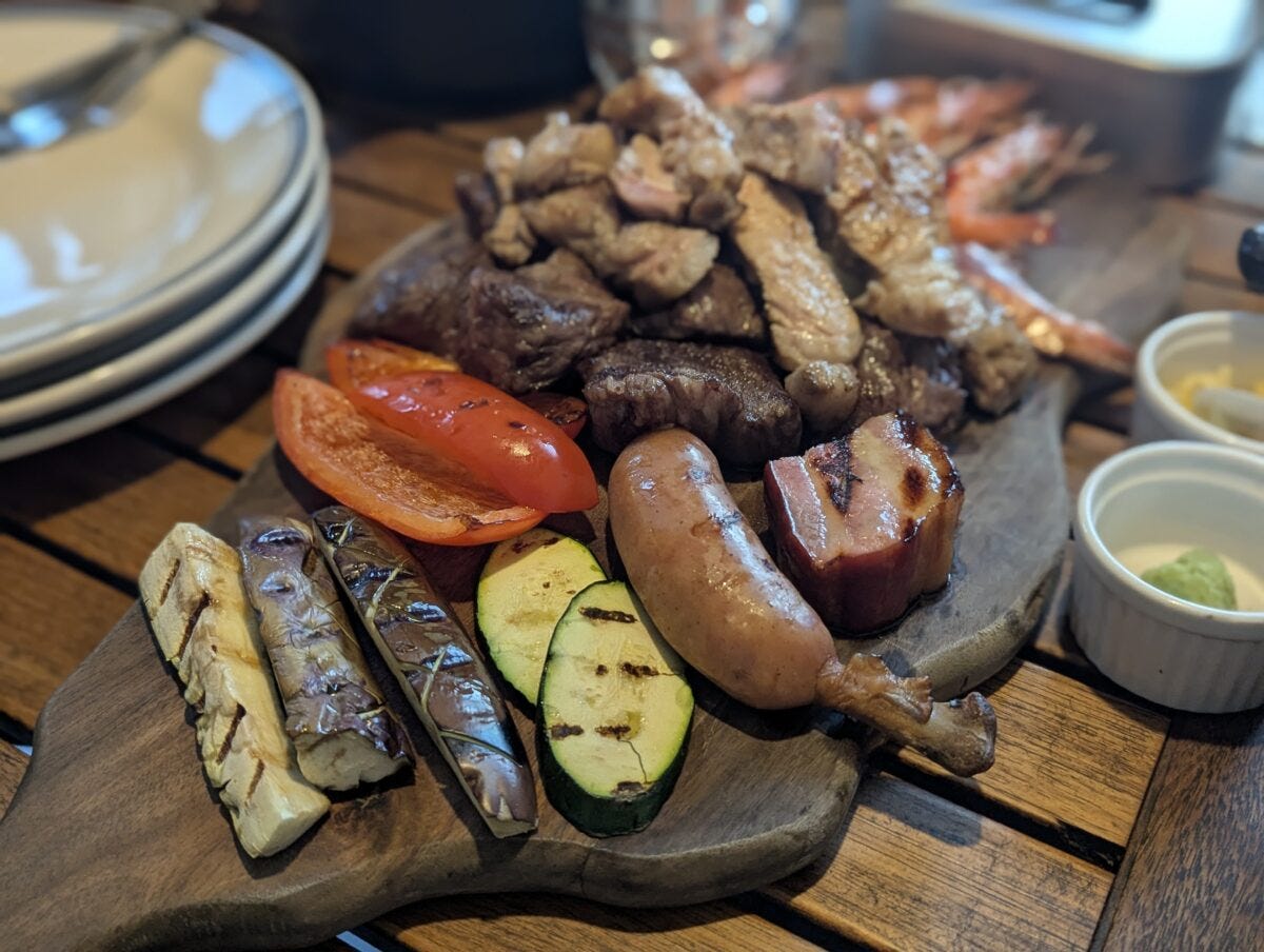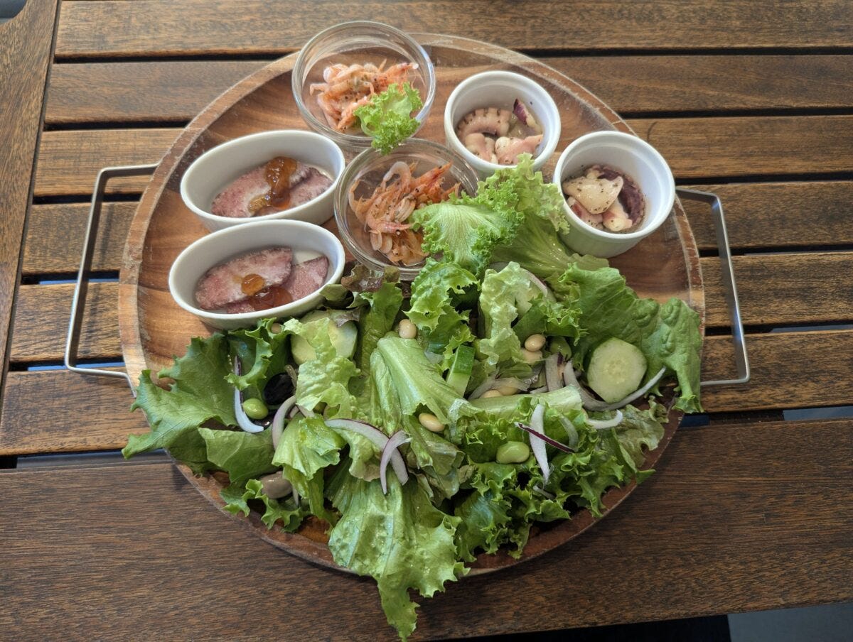 また、スペシャルバーベキューディナーに付く前菜のコールドミート・タコのマリネバジル風味・桜海老のねぎ胡麻マリネは、高級ホテルのオードブルとして出てきてもおかしくない絶品のもの。