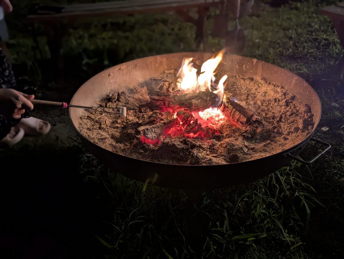 また、ディナーの後にはキャビン内に置いてあるマシュマロを常設の焚火台に持っていき、焼きマシュマロを楽しむことも可能。これには子供大喜びである。
