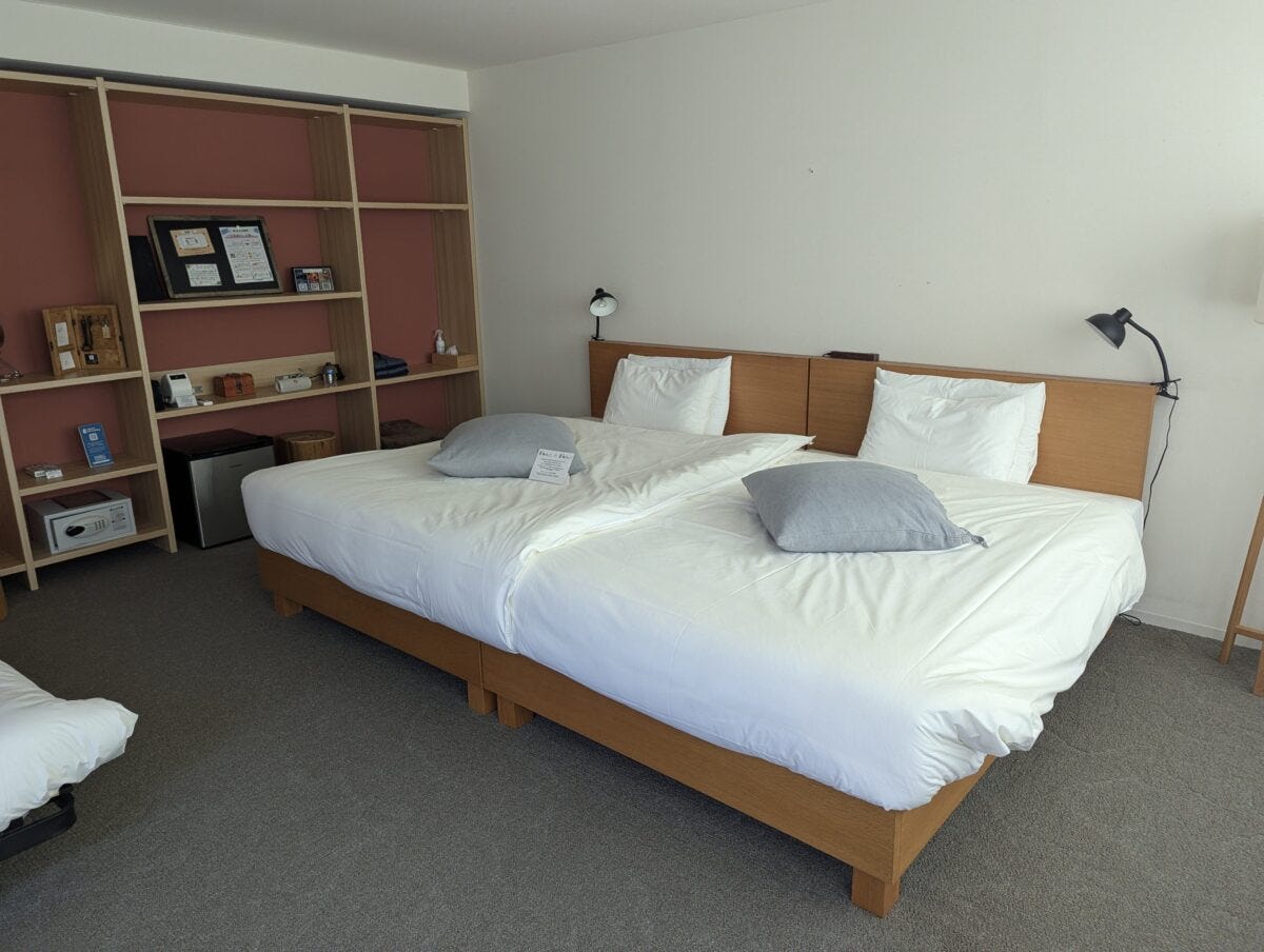 ベッドルームにはダブルサイズのベット2台が備わっており、ソファーベッドを加えると親2人、子供2人程度ならゆったりと寝られるほどの広さ。