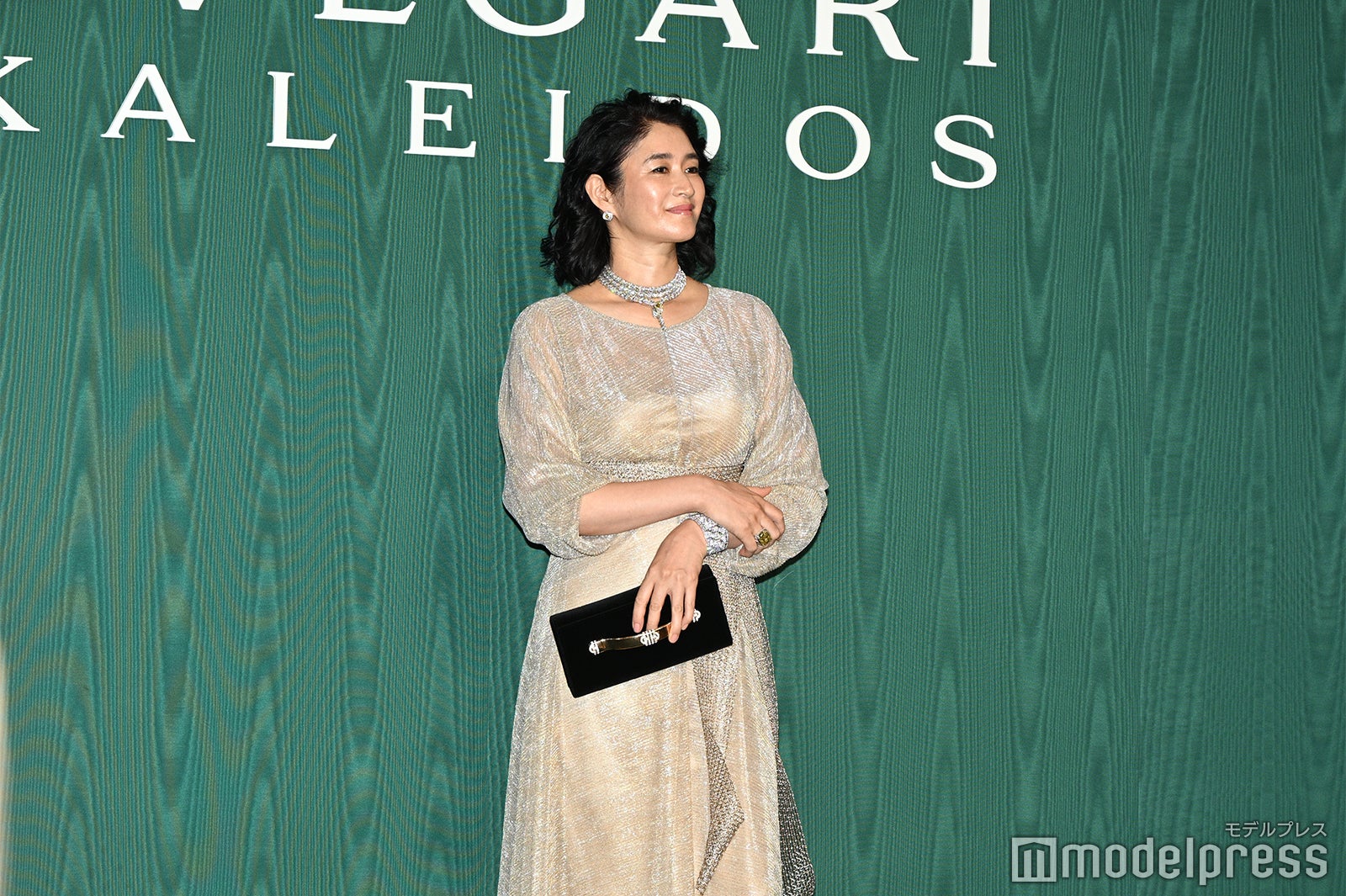 小雪は、透け感のあるゴールドのきらびやかなドレスを身にまとい登場した。艷やかなストレートヘアが印象的な小雪だが、この日はボリュームのあるウェービーヘアにイメージチェンジ。一変した雰囲気で新たな魅力を見せた。「ブルガリ カレイドス 色彩・文化・技巧」