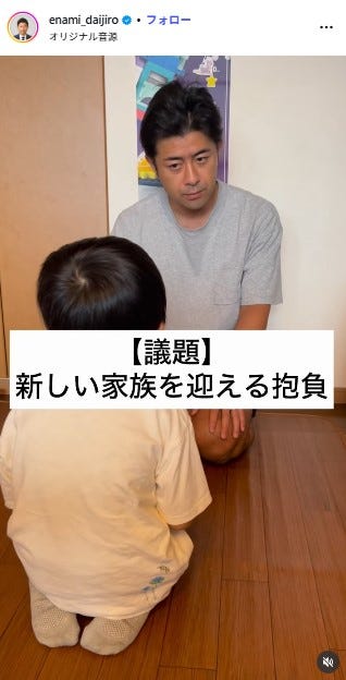 フジテレビの榎並大二郎アナウンサーが9月16日、自身のInstagramを更新。年内いっぱい育休に入ることを明かした。