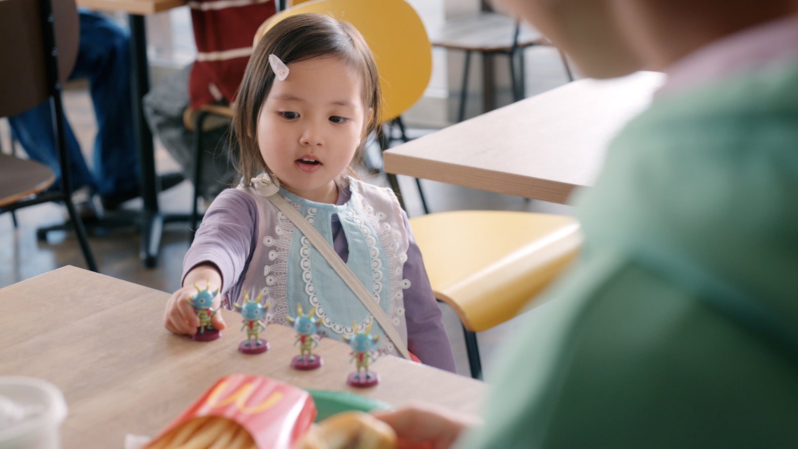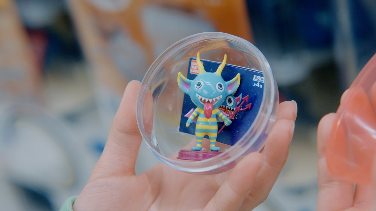 願いを込めてハンドルを回した結果、出てきたアイテムはお目当てのアイテムとは全く違うフィギュア。撮影本番では「これかぁ…」と残念な表情を見せていた多部だが、「カット」の合図がかかると、“ハズレ感”を漂わせながらもどこか愛嬌を感じさせるユニークなキャラクターをじっと眺め、クスッと笑みを浮かべる場面も。繰り返し挑戦しても同じアイテムが出てくるストーリーだったためか、多部もだんだんとこのビジュアルに見慣れ、撮影後半ではこのキャラクターに愛着を感じたようで「意外と可愛いかも…?(笑)」とつぶやく様子も見られた。カプセルトイに3回挑戦し、残念ながら3連続で“あのキャラクター”を引き当ててしまった多部に、マクドナルド店舗で出会った女の子がプレゼントしてくれたのは、まさかの“あのキャラクター”。子役の女の子が「これもどうぞ」とテーブルにフィギュアを追加してくれる“オチ”のシーンの撮影では、テイクを重ねる度に「本当にかわいい~!」と笑顔をほころばせていた。カメラに映る位置やフィギュアを置くタイミングなど、監督の指示どおりに演技する女の子の様子を見た多部は、「こんなに小さいのに…どうやって芝居を覚えているんだろう。たくさん練習したのかなぁ?」と驚きながら、優しい表情で見守っていた。