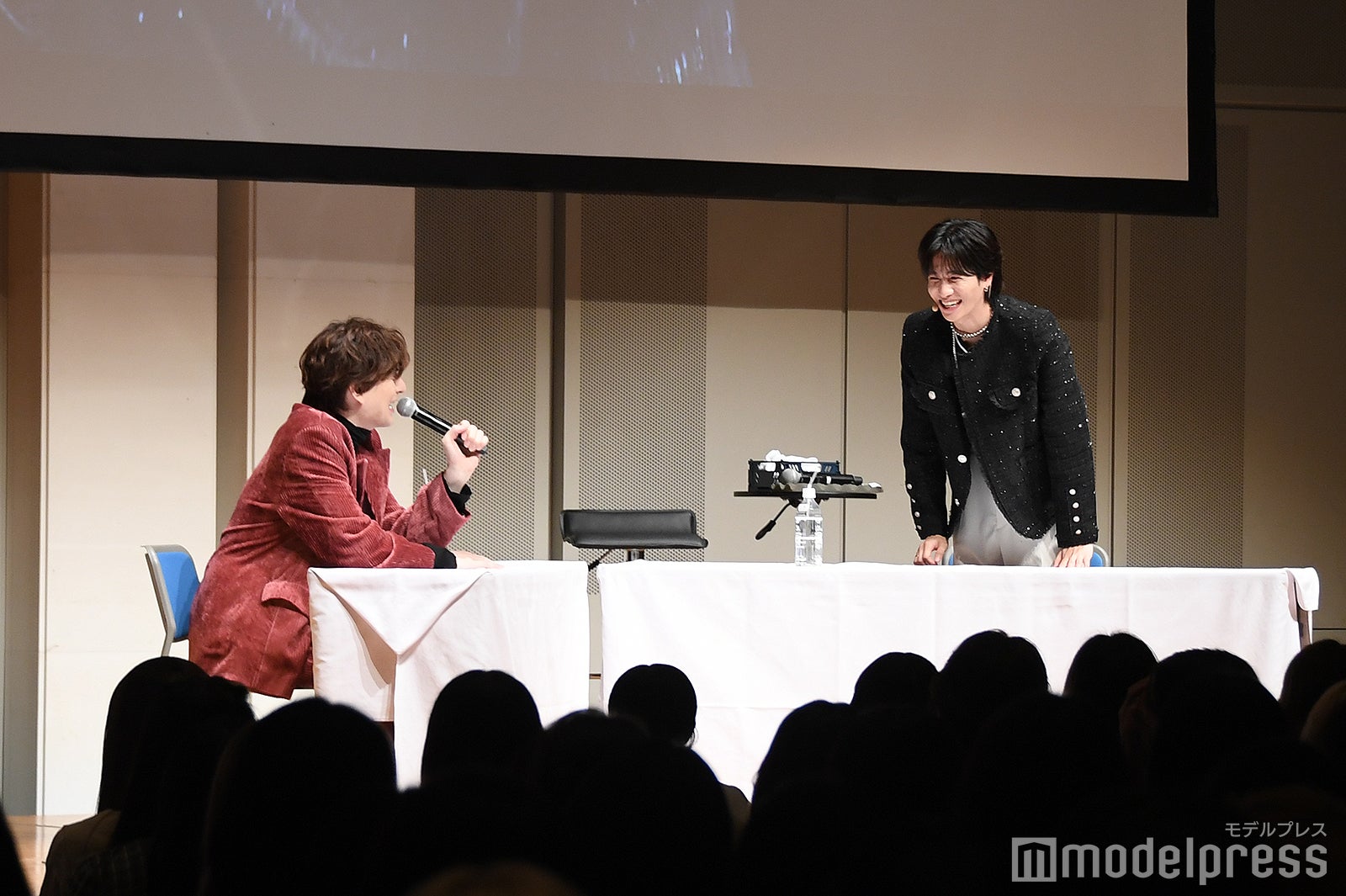 その後、客席からの質問に直接答える時間が設けられ、2020年に発表した楽曲「きぼうのあしおと」をファンと一緒に合唱し、会場には温かな一体感が広がった。また、「グラスハート」で演じた坂本一至の名台詞「5秒だけ、西条を困らせる。西条のことが好きすぎて、窒息しそうなんだけど」も披露。沸き立つ中、「終演後のお見送りで、みんなが自分の名前を書いて『好きすぎて窒息しそう』って言ってほしいと頼まれるけど、時間がなくてうまく言えないこともある(笑)。ごめんね、でもやる気はあるから」と笑顔で弁解する場面もあった。