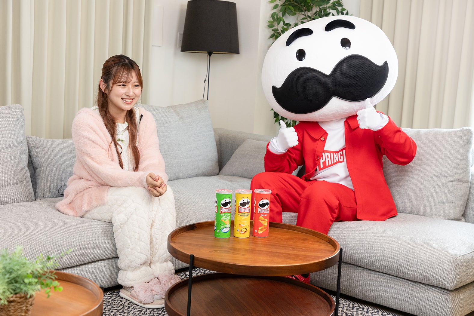 ティーンを中心に幅広い世代から支持を集め、SNSを通じて自身の魅力を発信し続けている希空。「プリングルズ」は、あそび心や好奇心をくすぐることをブランドの使命としており、希空こそが「日常のひと時をプリングルズがもっと楽しくしたい」という想いを等身大で表現できる存在だと考え、今回の起用に至ったという。部屋着姿でくつろぎながら商品と一緒にドラマや映画を楽しむ希空の新キービジュアルは、9月下旬より店頭で順次展開される。メイキング映像には、撮影現場に笑顔で登場する希空の姿や、応援にかけつけたMr.Pと一緒に、チップスを2枚くわえてアヒルの口のまねをする遊び心にあふれたユニークなポーズ「ダックリップ」に挑戦する様子、Mr.Pのトレンドマークのひげをつけて楽しむ様子が収められている。撮影に真剣に取り組む表情から普段は見られないおちゃめでリラックスした表情など、希空の魅力が詰まった映像となっている。