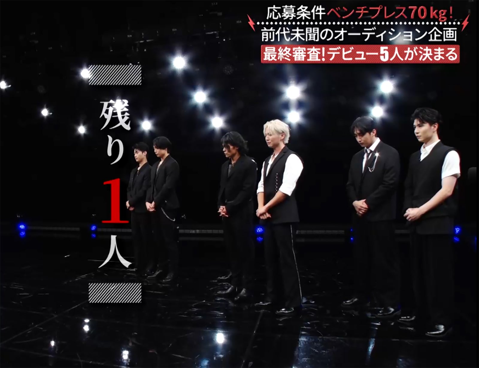 そしていよいよデビューメンバーの発表へ。メジャーデビュー経験のある和田光平、元メンズアイドルのリーダー・杉浦豪、ハワイ出身の最年少・リューク、SNS総フォロワー16万人・高橋憲太、ドラマや舞台で活躍中の羽田野孝介の5人の名前が呼ばれた。するとここで、デビューメンバは5人と伝えられていたが、審査員で話し合いをした結果、枠を急遽追加したことを発表。6人目に高野が選ばれ、デビューが決定した。