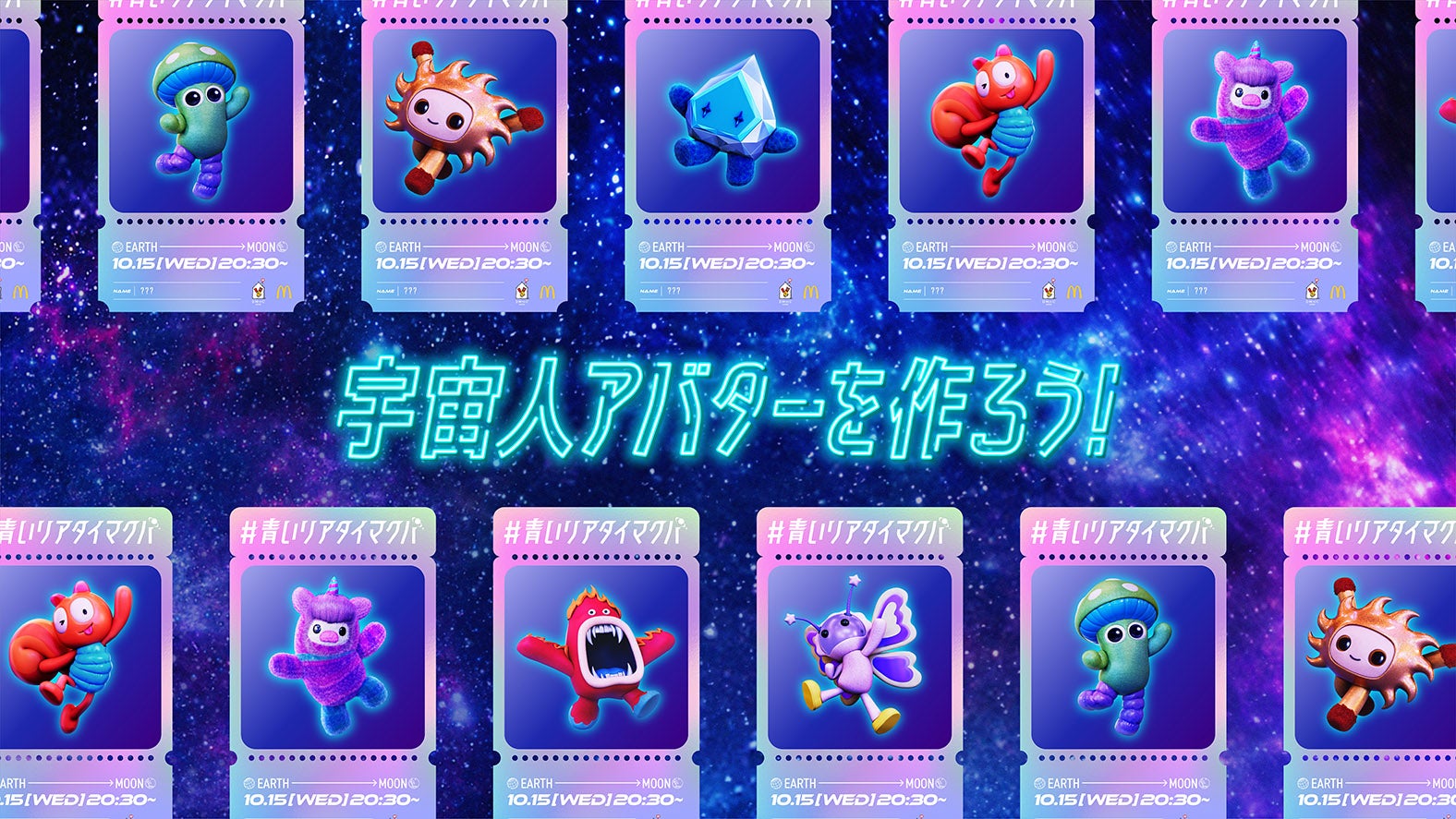 「青いマックの日」に先駆け、10月15日には、ライブ配信を通してリアルタイムに“推し”とともに好きなメニューを食べながら、マクドナルドパーティーをしているような気分を楽しめる「#リアタイマクパ(リアルタイムマックパーティー)」の特別版として「#青いリアタイマクパ」を開催。「#青いリアタイマクパ」では、XGのメンバーが「BLUE GALAXY SET」を食べながら、メンバーのお気に入り宇宙人アバターの紹介や、XGメンバーによる「ドナルド・マクドナルド・ハウス」の訪問動画の公開、視聴者がハートをタップして想いを届ける「TAP THE BLUE HEART」など盛りだくさんの内容で届ける。さらに、XGが「#青いリアタイマクパ」を配信する架空の店舗「マクドナルドGALAXY店」に、抽選で選ばれた宇宙人アバターをエキストラとして招待する。(modelpress編集部)