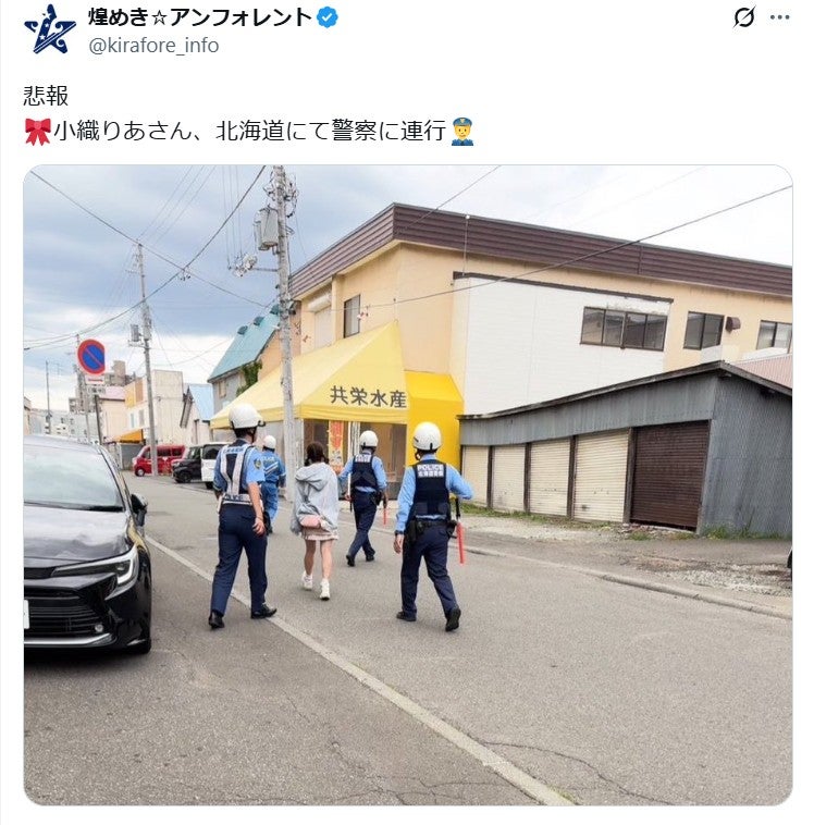 28日、公式Xでは「本日未明、小織りあがひき逃げ事故に遭い、現在警察で現場検証中です。幸い大きな怪我はありませんが、打撲の可能性があるため、本人の判断によりライブ出演を見合わせる場合がございます」と報告。続く投稿では「先ほどの事故について小織りあは軽症ですが多少の違和感があり病院で診察中です」と小織の様子を伝えた。なお、事故については「同席の月埜みみが逃走車両の写真を撮影し特定しましたが加害者に認知がなく“当て逃げ”として扱われるようです」と説明。「今後は警察・保険会社と対応を進めていきます」とした。