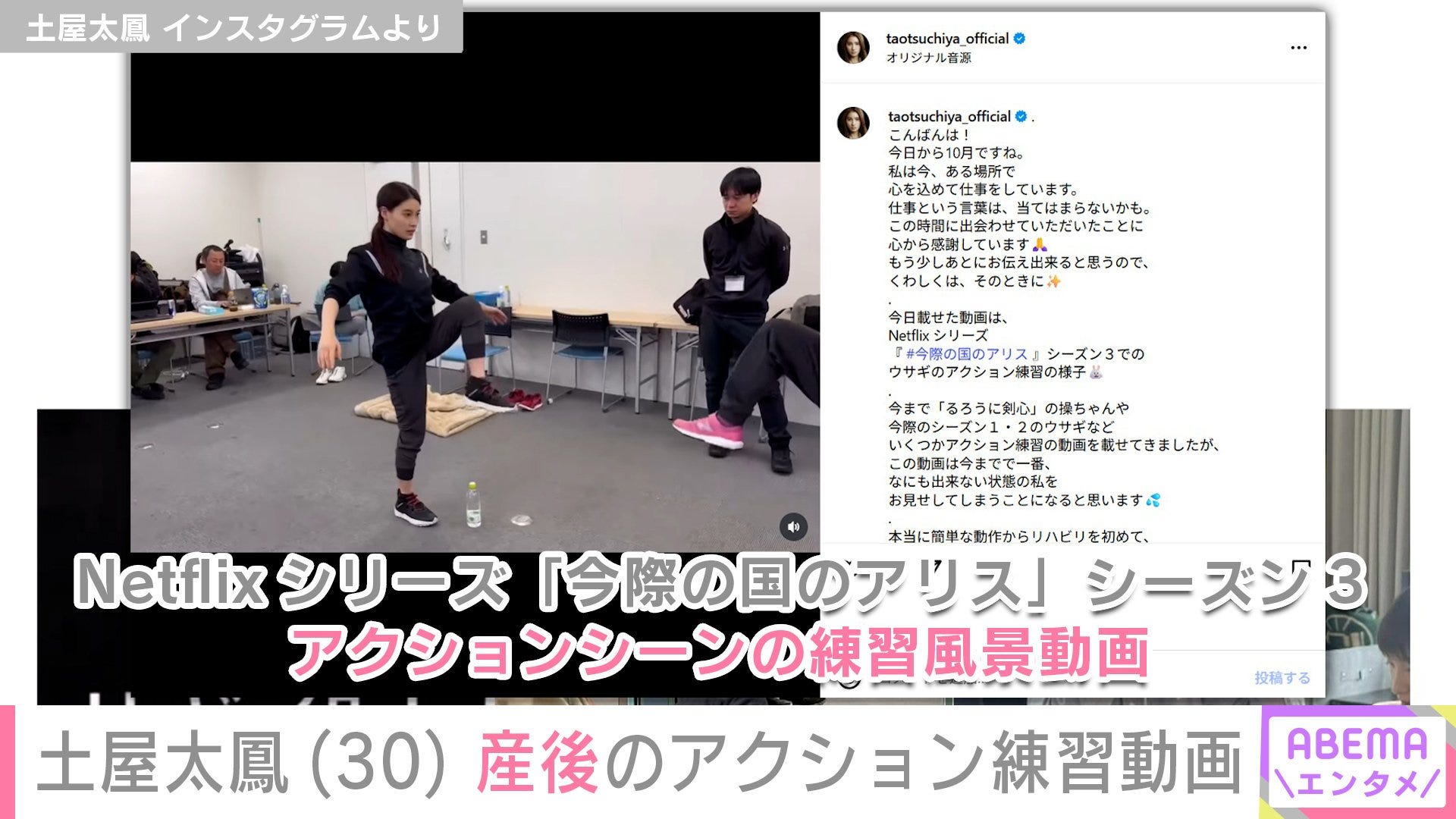 1児の母で俳優の土屋太鳳(30)が、アクションシーンの練習風景動画を披露。第1子出産からの体の変化について赤裸々に明かした。