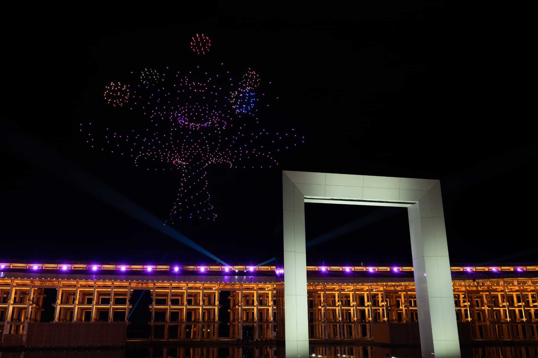 日没後には、会場全体が光と音、テクノロジーが織りなす幻想的な空間に変貌。「One World, One Planet.」では、音響やプロジェクションマッピング、ドローンなどが連動する壮大なショーが展開されます。