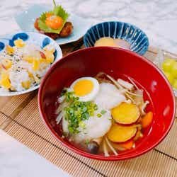 渡辺は1986年、アイドルグループ「おニャン子クラブ」の会員番号29番として芸能界デビュー。現在はタレント・歌手活動のほか、ブログを通じて日々の食事や家族との生活、愛犬とのふれあいなどを精力的に発信。料理の腕前やセンスの良さにも定評があり、多くのファンから共感と支持を集めている。6日、“お月見うさぎ”の刺繍が施されたランチマットを敷き、うさぎの形をしたピンクと白のかまぼこ、輪切りのゆで卵、刻みネギ、きつね色のお揚げが彩りよく添えられた“お月見にゅうめん”を披露した渡辺。赤いお椀に盛られた一品は、まるで秋の夜空を思わせる上品な仕上がりとなり、話題を呼んだ。