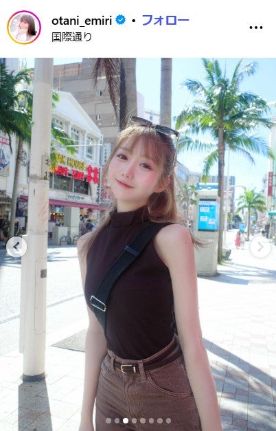 =LOVE大谷映美里、スラリ二の腕輝くノースリーブ姿公開 沖縄でのオフショットに「発光してる」「みりシーサー可愛すぎる」の声