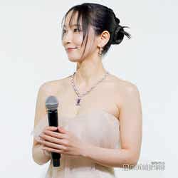 吉岡はふんわりとしたチュールが特徴的なピンクのドレスで美しいデコルテをのぞかせて登壇。6,000万円を超えるネックレスなどのハイジュエリーと「HIGH JEWELLERY」という名のフレグランスを身にまとって登場した。吉岡は「今日のジュエリーはフレグランスともぴったりのジュエリーになっています」とにっこり。「つけていても本当に華やかな気持ちになりますし、圧倒的な輝きといいますか。『HIGH JEWELLERY』という香りとリンクしている素敵なジュエリーをつけさせていただいています」と語った。
