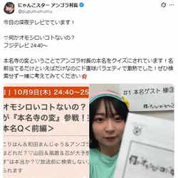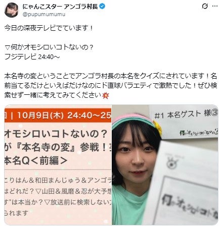 お笑いコンビ・にゃんこスターのアンゴラ村長が9日放送のフジテレビ系「何か“オモシロいコト”ないの?」(24時15分〜)に出演。本名を明かした。