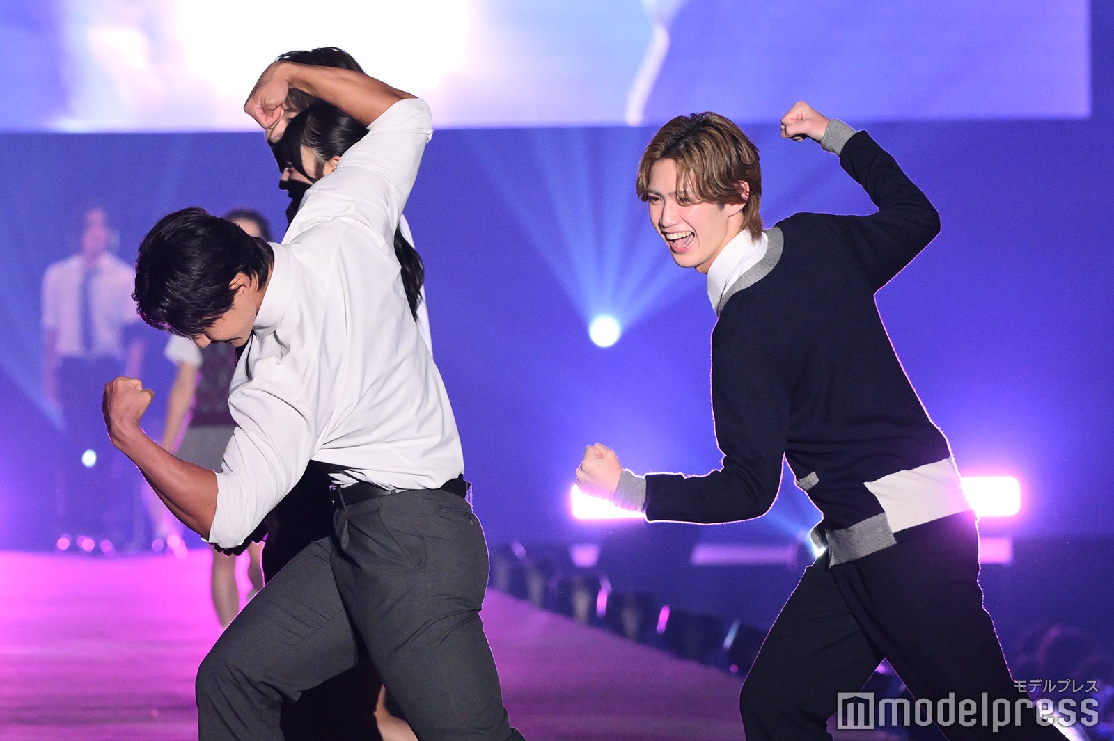 「今日、好きになりました。」ステージのトップバッターを飾ったのは、「夏休み編2025」でカップル成立した内田金吾&多田梨音。トップでは内田が多田をバックハグしたり、多田が内田の頬に手を添えて顔を寄せ合ったりと、ラブラブなランウェイを披露した。同シリーズに参加した松井芹、同シリーズに続き現在「チュンチョン編」にも出演している榎田一王も仲良くランウェイ。頬に手を添えた可愛らしいポーズに加え、筋肉ポーズも見せた。