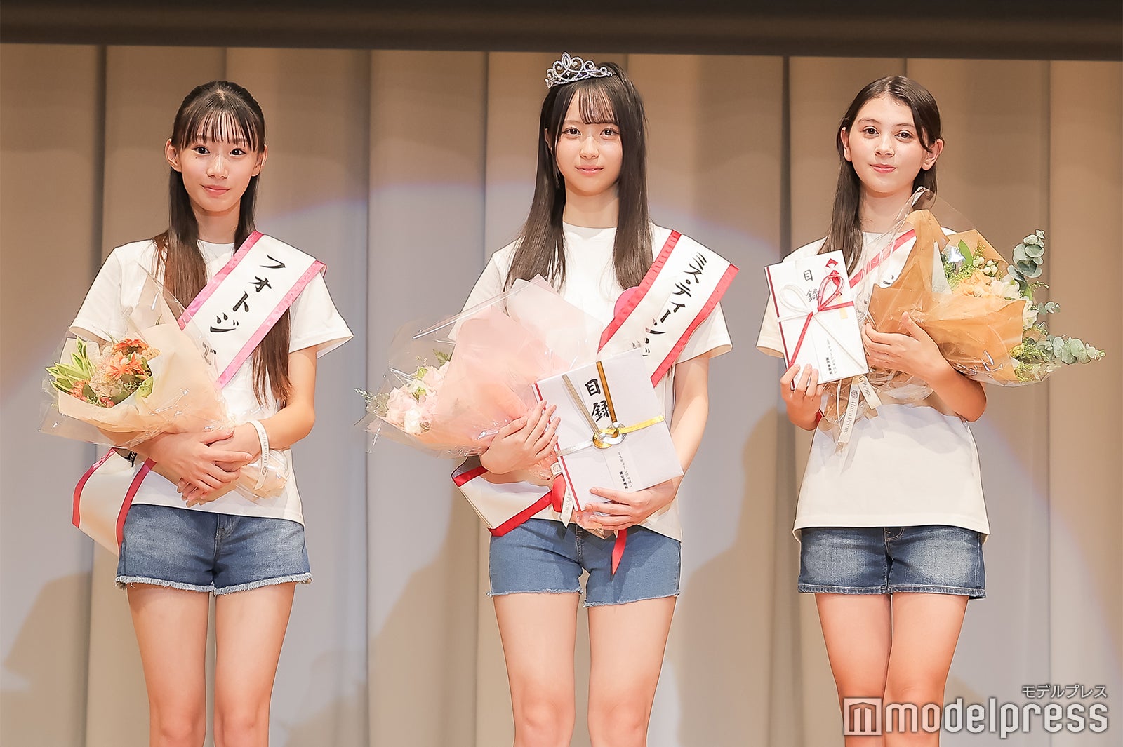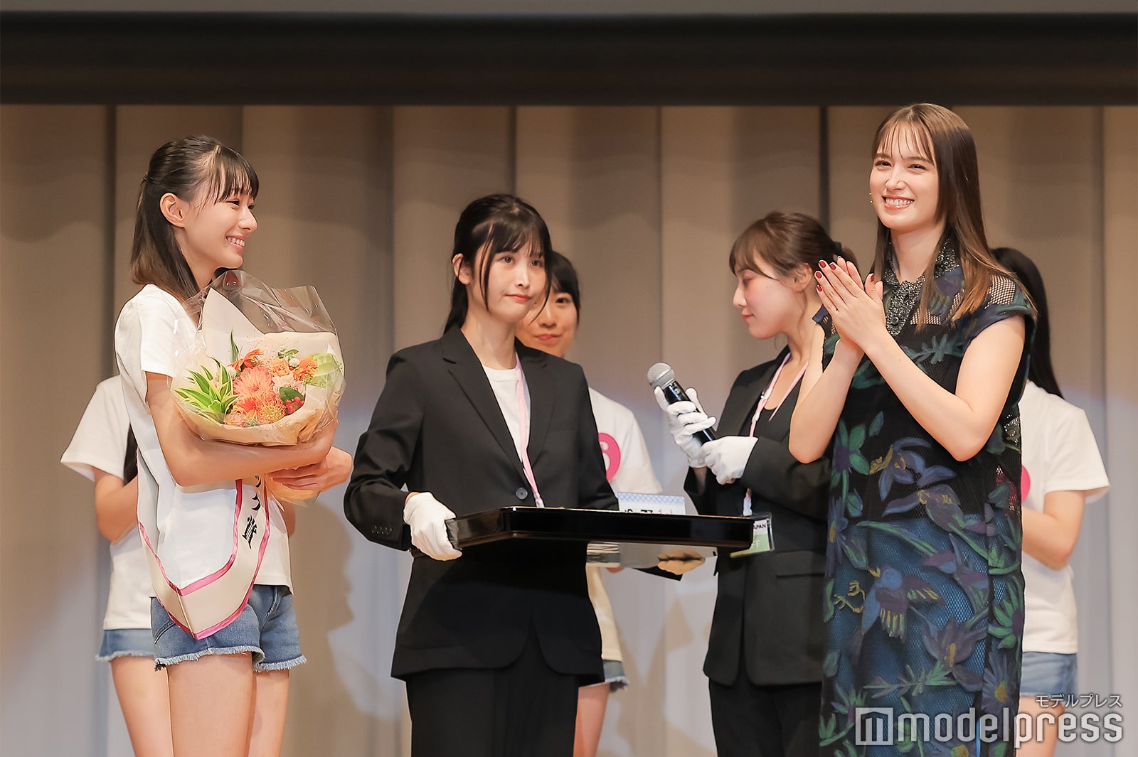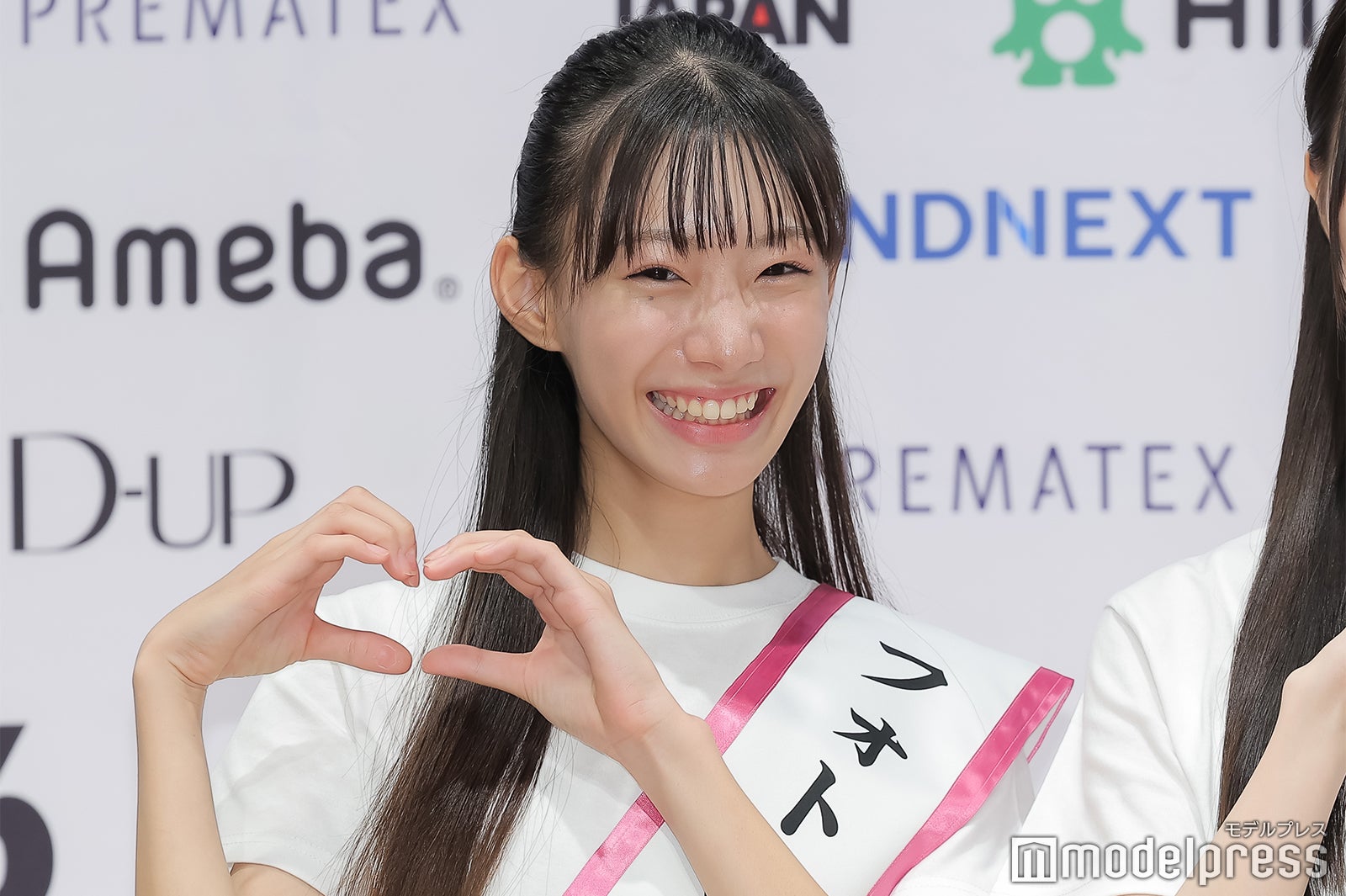 大会後の囲み取材では、改めて心境を聞かれた上野さんが「これまで一生懸命頑張ってきたことがこのような形で実を結んで、すごく嬉しい気持ちです」とにっこり。今後、してみたい仕事を尋ねられると「ミュージックビデオに出演して新しい自分を表現してみたいですし、大きなランウェイを歩くのも夢です」と答えた。憧れのモデルは誰かという問いには、応援アンバサダーとしてステージに立っていた新川優愛、平祐奈、トラウデン直美を見て「もちろんこの…」と言いかけたが、3人からは「大丈夫だよ」「これは大人が悪い(笑)」とフォロー。3人の言葉を受け、上野さんは「あえて別の方を言うなら、中条あゆみさんです。存在感がありながら、自然体で親しみやすい笑顔がとっても魅力的で憧れています」と打ち明けた。