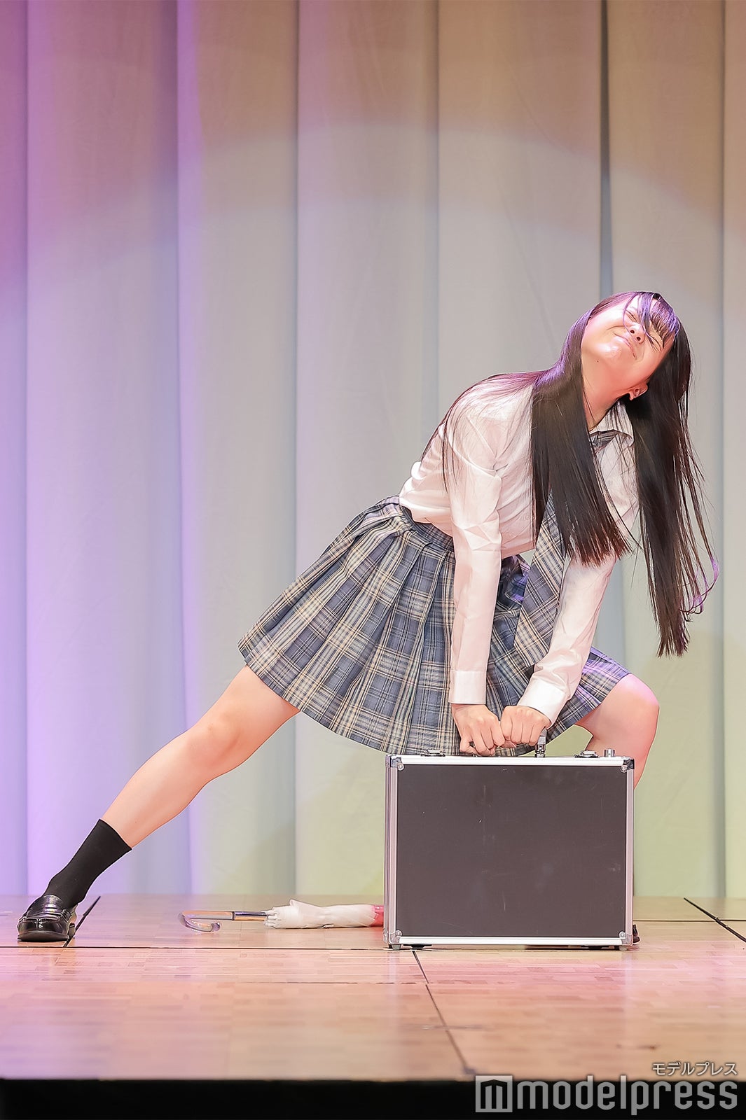 パントマイムを披露した理由を聞かれると「13年習っているクラシックバレエを披露しようと思っていたのですが、毎年、クラシックバレエを披露する方が多く、被ると思ったのであえて違うパントマイムを披露しました」と告白。パントマイムとの出会いについては「私が通っている学校の芸術鑑賞会でパントマイムを見た際に、パントマイムの表現力の高さや面白さに衝撃を受けて、私も真似したくなりました。それがきっかけで真似をしたらハマりました」と語った。