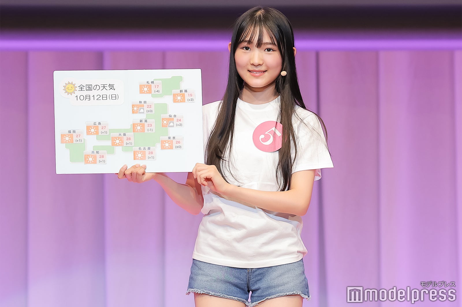 今回で15回目の開催を迎えるミス・ティーン・ジャパン。13歳から19歳までを対象に全国各地で地方大会が行われ、応募総数3582人の中から選ばれた11人のファイナリストが決勝大会に進出した。準グランプリは池之内琉羽(いけのうち・るう/13歳/大阪府)さん、フォトジェニック賞は中尾明彩(なかお・めいさ/14歳/鹿児島県)さんとなった。上野さんは、この日の審査で最近ハマっているというパントマイムを制服姿で披露。用意した鞄と傘を使い、表情豊かなパフォーマンスで会場を盛り上げた。