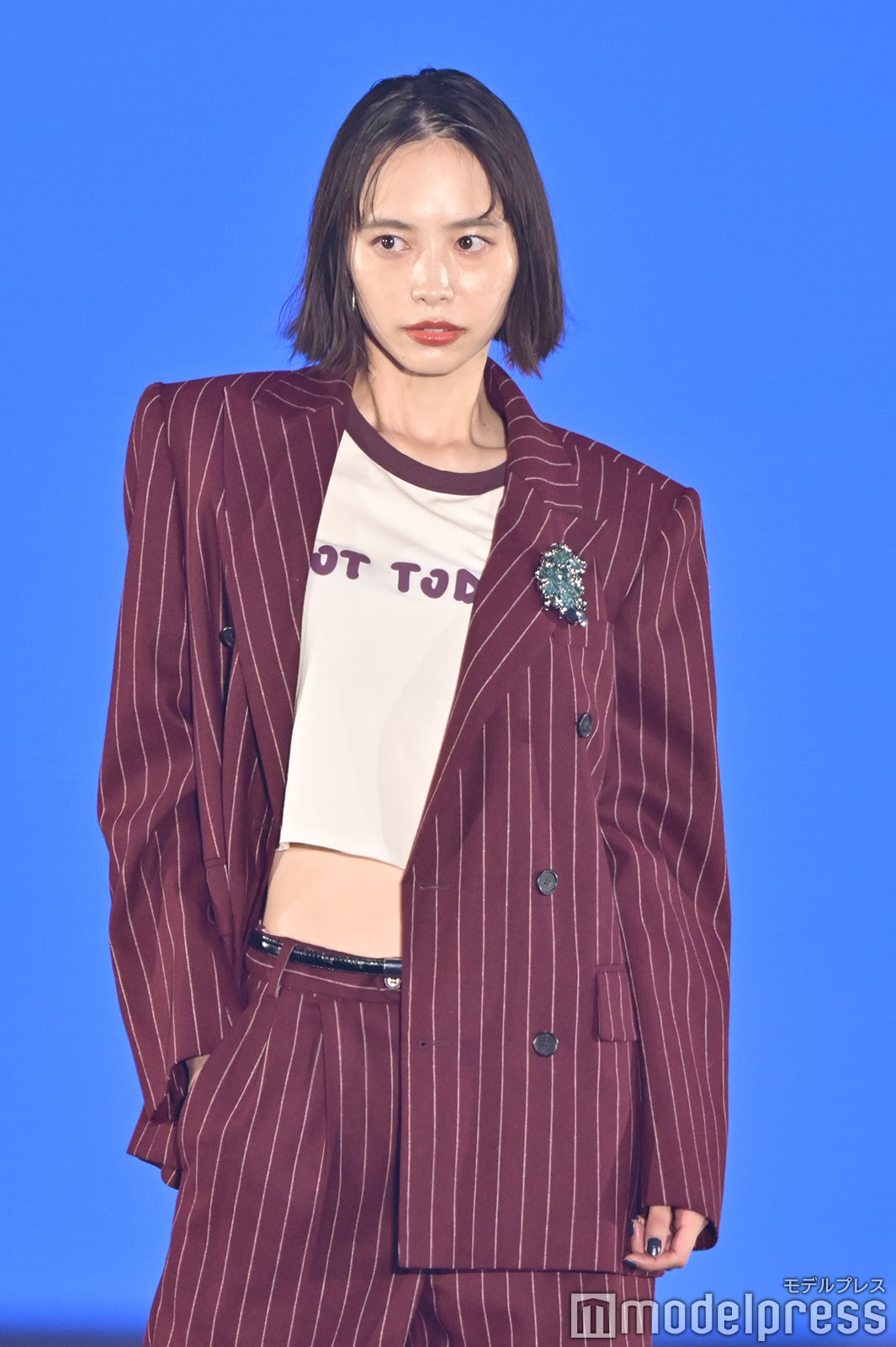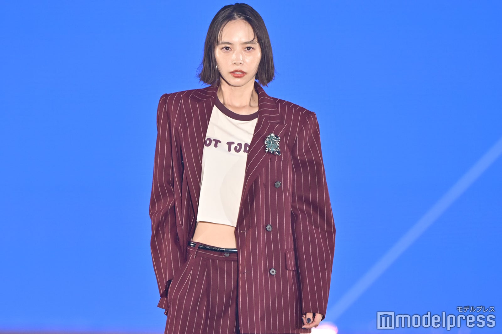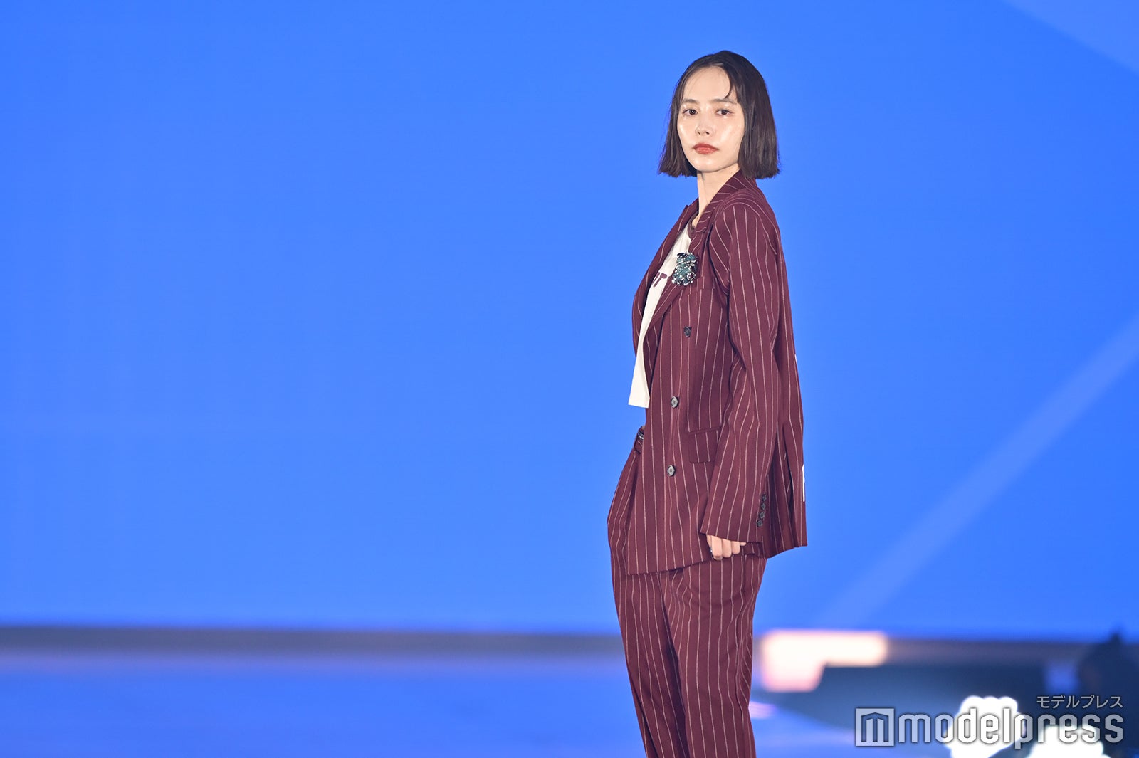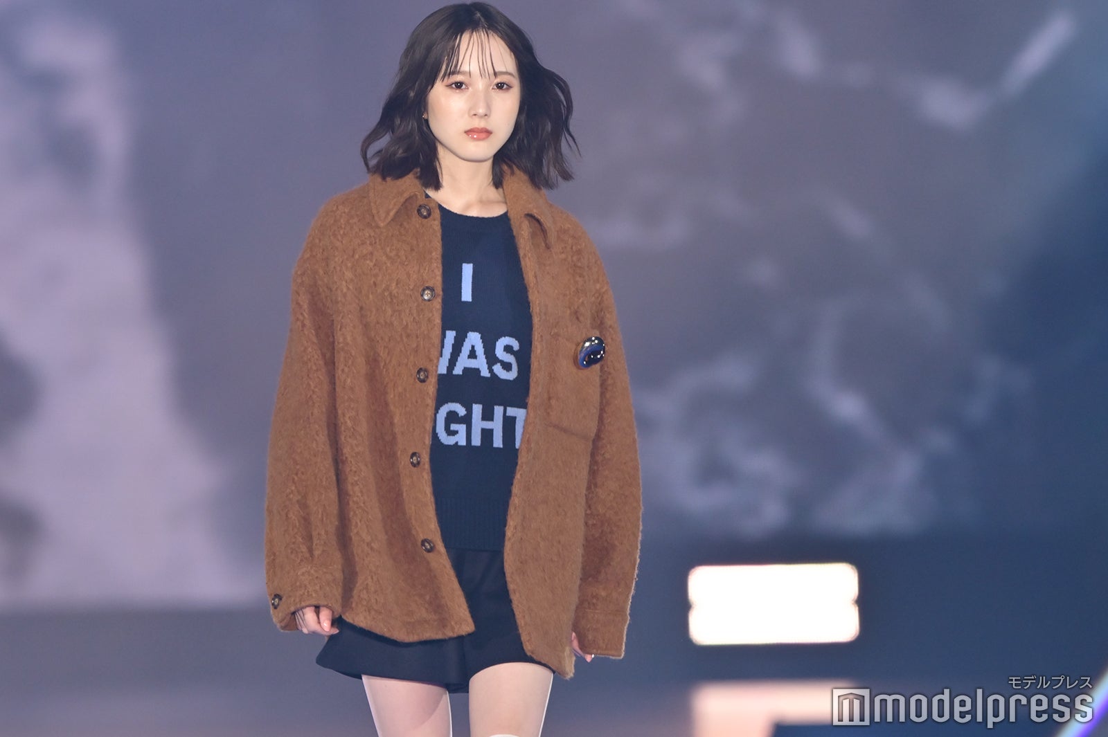 ブルーとグリーンのチェックシャツをお揃いでまとって登場した2人。秋らしいコーデュロイ素材をアクセントに、クールなポージングを決めた。「ガルアワ2025 A/W」テーマは「Dress Up My Style -Play the game of You-」