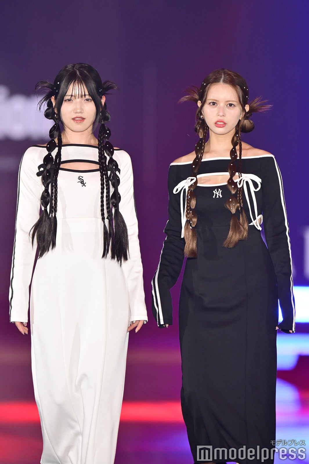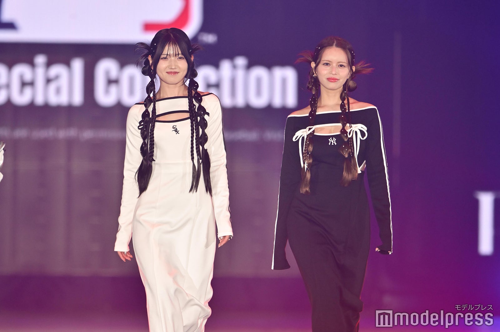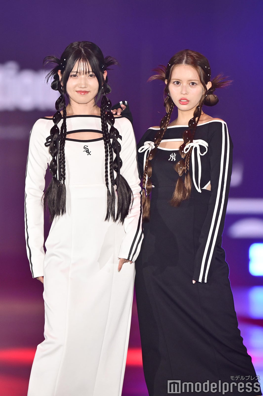 元AKB48村山彩希、奇抜ヘア×胸元開きワンピで登場 吉崎綾とペアランウェイ【ガルアワ2025AW】