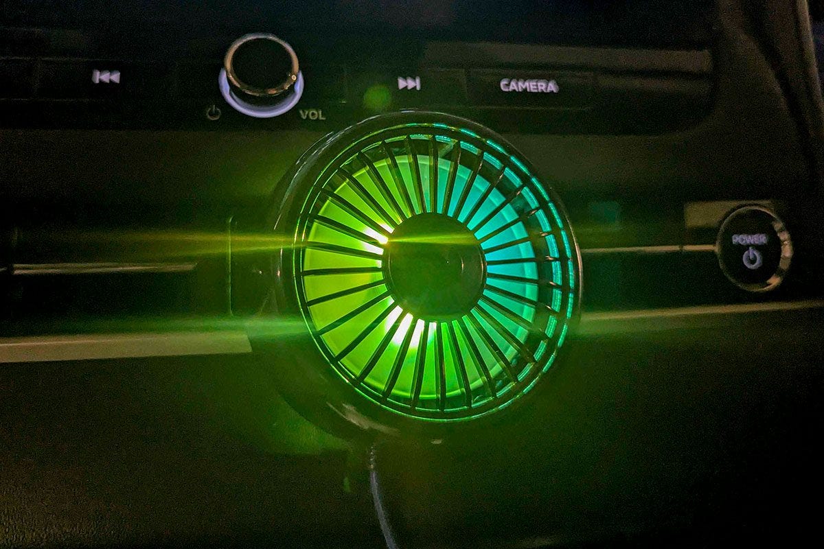 それが「USB式グラデーションライト付車載扇風機」(330円)。