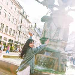 先行カット第12弾はコペンハーゲン最終日に河田が楽しみにしていたスワンボート乗り場でのショット。ロマンチックな街並みに挟まれた川でのんびりボートを漕いだ後、キュートな笑顔で船着場に降り立った瞬間の1枚に。ベレー帽×アーガイルカーディガンのプレッピーなコーディネートも見せている。河田陽菜、2nd写真集「テイクオフ」