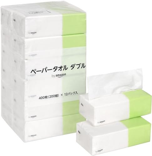 by Amazon ペーパータオル ダブル ホワイト FSC認証紙 400枚(200組) 12パック入