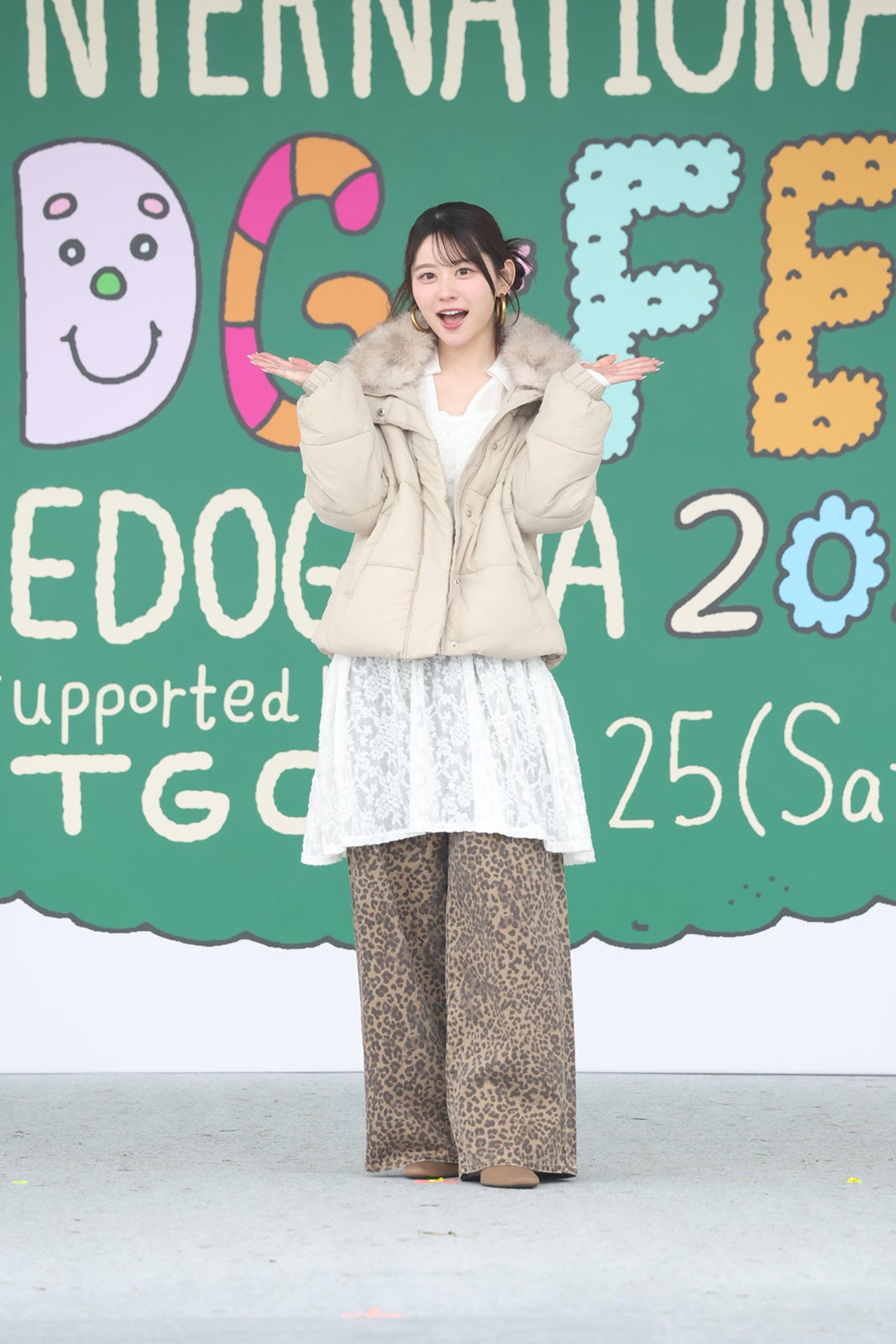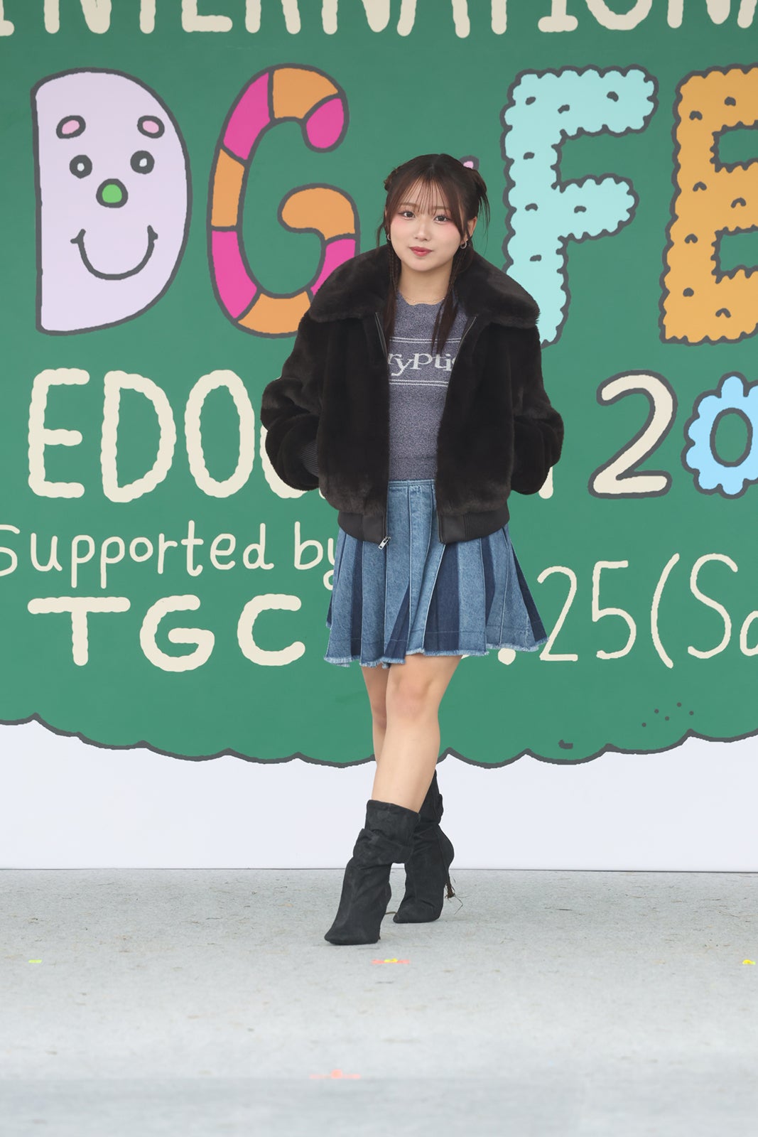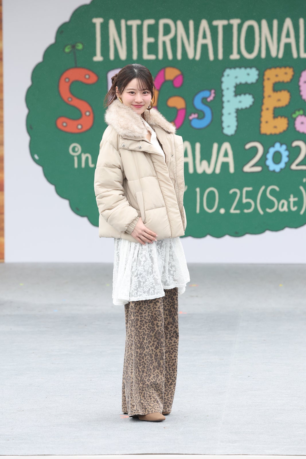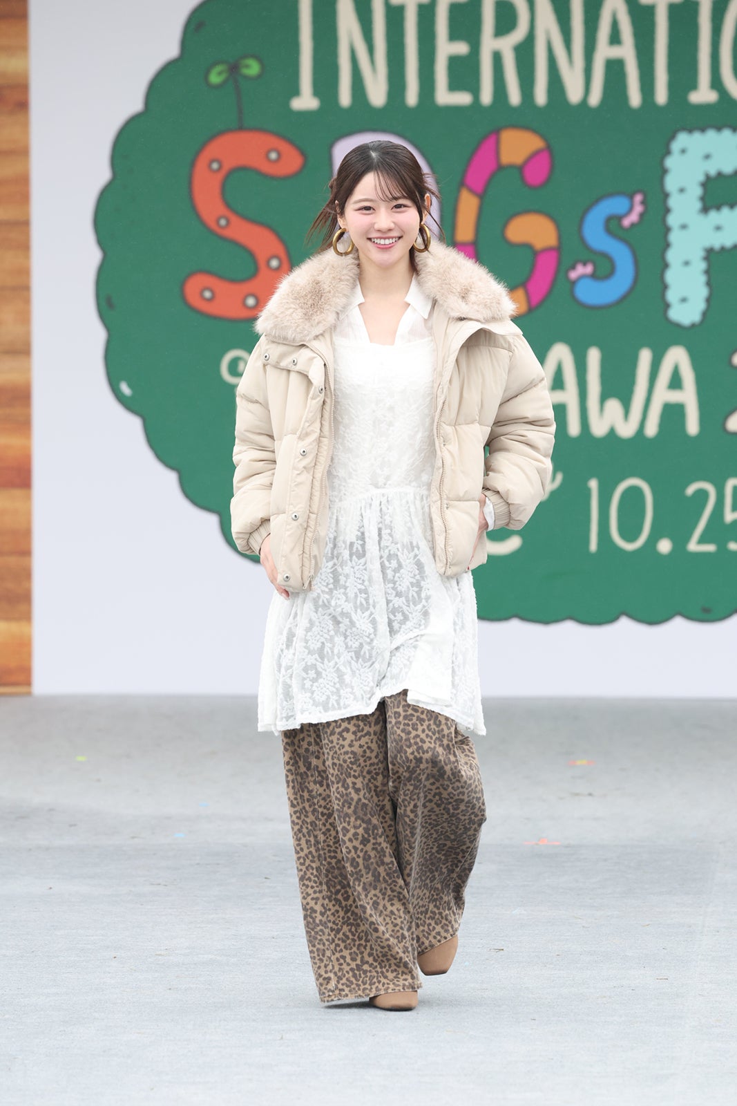 全出演者が1つ以上のサスティナブルアイテムを取り入れた地球に優しいエシカルファッションで表現したステージには、希空、りんか、鈴陽向(WILD BLUE)、ねお、野咲美優、梶原、樋口が登場。希空はエコファーがついたアウターにウォーターレスデニムのミニスカート、りんかはリサイクルアイテムのダウン、鈴はエシカルアイテムを身に着けた。ねお、野咲はアウターやスカートにエコアイテムを着用。また梶原、ねお、野咲、樋口もウォーターレスデニムを着こなした。