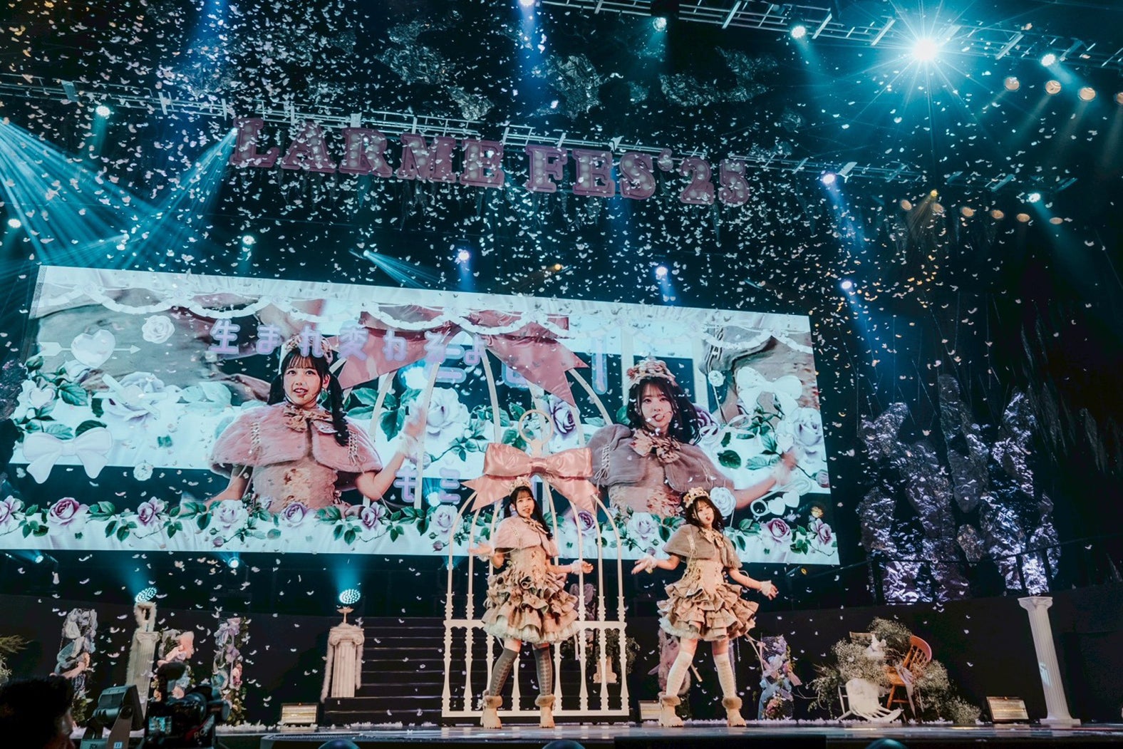 2024年に続き2回目となる本イベントは「bisque doll theater/着せ替え人形劇」をテーマに、誌面を彩るモデルによるファッションショーや、今をときめく豪華アーティストによるライブパフォーマンスが繰り広げられ、会場は熱気に包まれた。桐原美月(CANDY TUNE)、菅田愛貴(超ときめき◆宣伝部※「◆」は正式には「ハートマーク」)らが華やかなランウェイを披露。Angelic Pretty、ミシェルマカロン、マリームーンのファッションショーではそれぞれのコレクションを身にまとい、華やかなランウェイを披露すると、会場からは大きな歓声が上がった。モデルたちが時折見せるキュートなポージングや笑顔に、観客は魅了されていた。