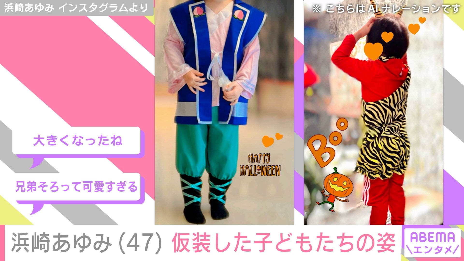 2児の母で歌手の浜崎あゆみ(47)が、ハロウィンのコスチュームを着た子どもたちの姿を公開。「可愛い息子ちゃんたち見れてうれしい」「あゆちゃんに似て色白だよね」などと、反響を呼んでいる。