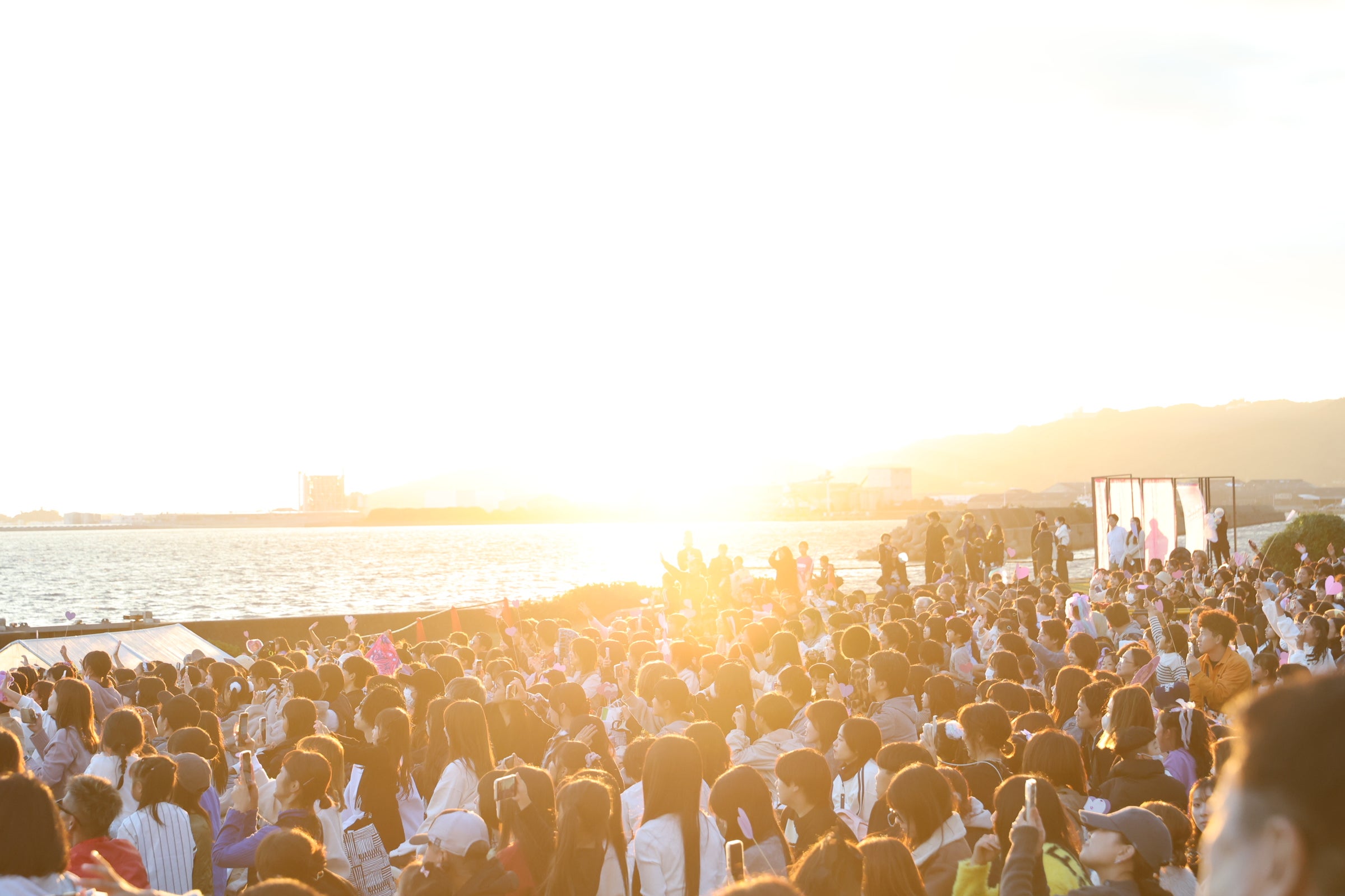 2026年2月に開催予定の「Samsung Galaxy presents TGC in あいち・なごや 2026」にも出演が決定し、今注目を集める5人組ボーイズグループのWILD BLUEが登場。竹島を背景にした幻想的なステージを舞台に、エネルギッシュなパフォーマンスを披露した。オープニングナンバーは、結成1周年記念ライブの翌日24日に配信がスタートした5th Digital Single「Astrist」からスタート。夕日に照らされ軽快なビートと透明感のあるハーモニーで観客を一気に惹き込んだ。しっとりとしたメロディと切ない歌詞が印象的な「Love is Blind」では、海風とともに心地よい余韻が会場を包み込み、観客は静かに聴き入る姿も。「ヘイヘイヘイ~!蒲郡市、過去イチ開放的なロケーションで沢山の人が来てくれて嬉しい!空気が美味しいし、いつもより汗かかないよね!」とメンバーもこのステージをとても楽しんでいる様子。続いて「Oh Girl」、「BOX of DESTINY」と圧巻のパフォーマンスを披露した。
