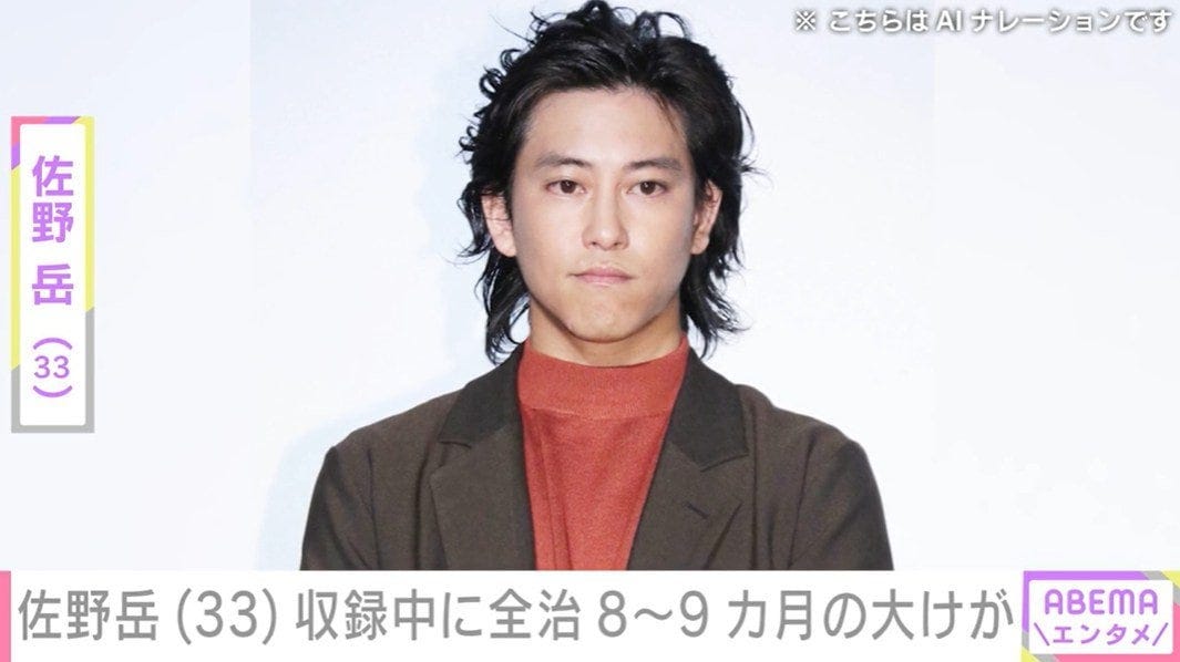 俳優の佐野岳(33)が、12月21日放送予定のTBS『最強スポーツ男子頂上決戦 2025冬』の収録中、右膝の半月板損傷と靭帯断裂で、全治8~9カ月のけがを負ったことがわかりました。