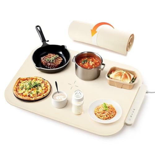 Udoric 食品保温プレート 電気保温トレイ 折りたたみ式 ホットプレート 食品保温器 フードウオーマー 3段階温度調節 シリコン 多機能食品断熱ボード 卓上ヒーター 丸めて収納(ホワイト)