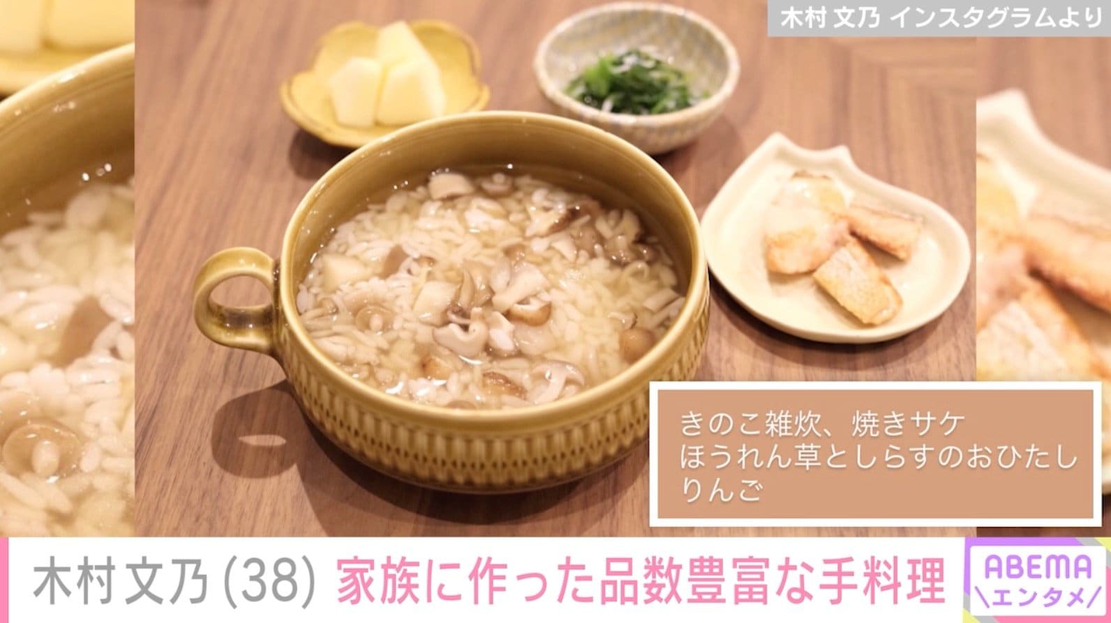 3日には、「#今日のまんぷくごはん」として、「サーモンのバタぽんちゃんちゃん風」「明太だし巻きたまご」「ひじき煮」「シューマイ」「大根と白まいたけのおみそ汁」「寝かせ玄米ごはん」が並ぶ、大人2人分の食事を公開。同じ日に更新したストーリーズでは、「きのこ雑炊」や「焼きサケ」といった子ども用の手料理も披露。
