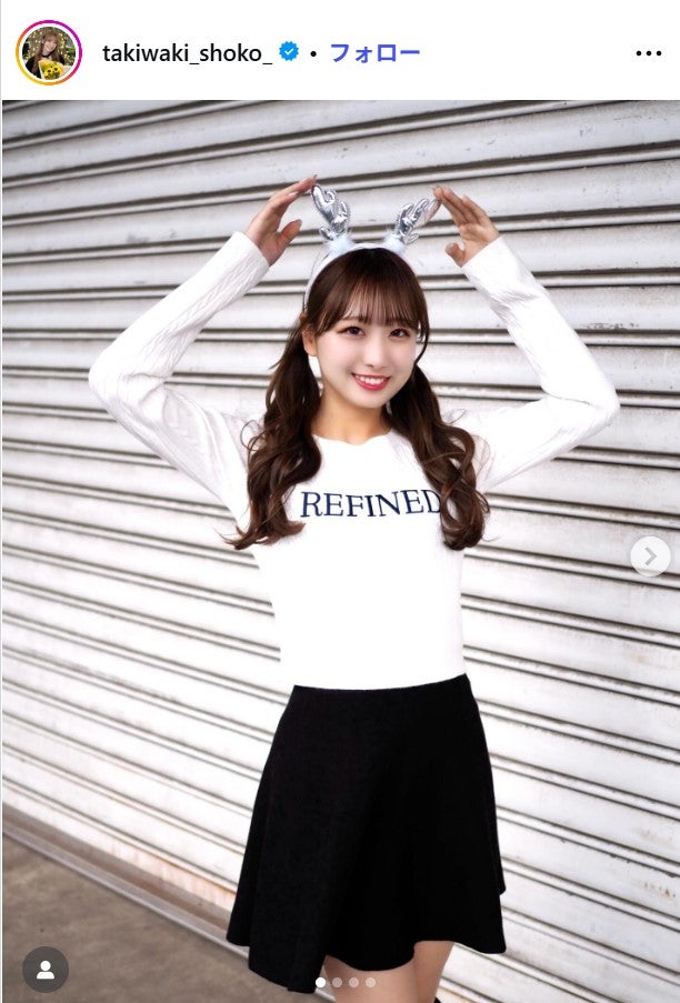 指原莉乃プロデュースのアイドルグループ=LOVE(イコールラブ)の瀧脇笙古が12月19日、自身のInstagramを更新。白いトナカイのミニスカートコーディネートを披露し、注目を集めている。
