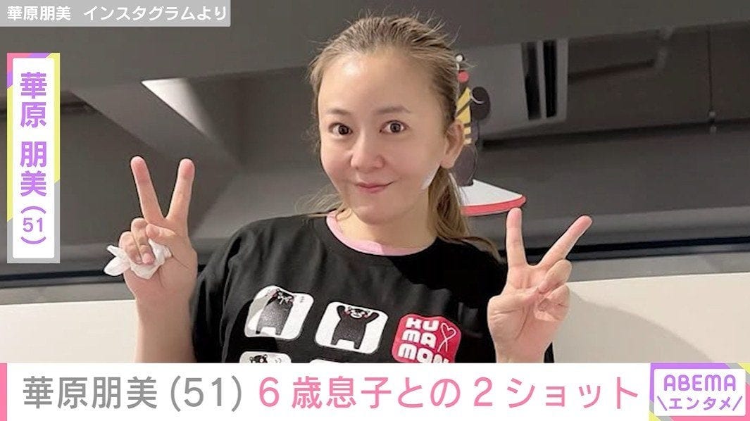 歌手の華原朋美(51)が26日、Xを更新。6歳の息子と顔を寄せ合う移動中の2ショットを披露した。