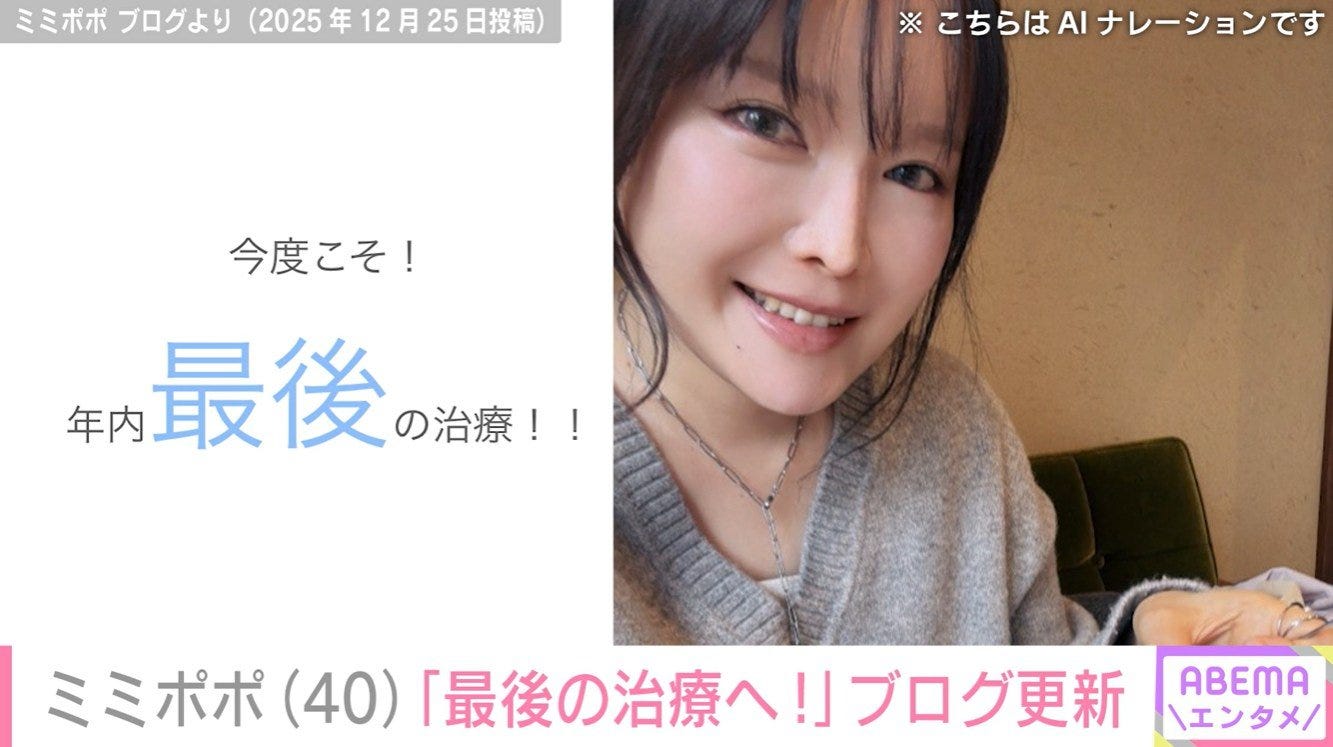 ミミポポは27日にもブログを更新しており「年内最後の抗がん剤治療、無事 受けれたよー!」と報告している。(『ABEMA NEWS』より)