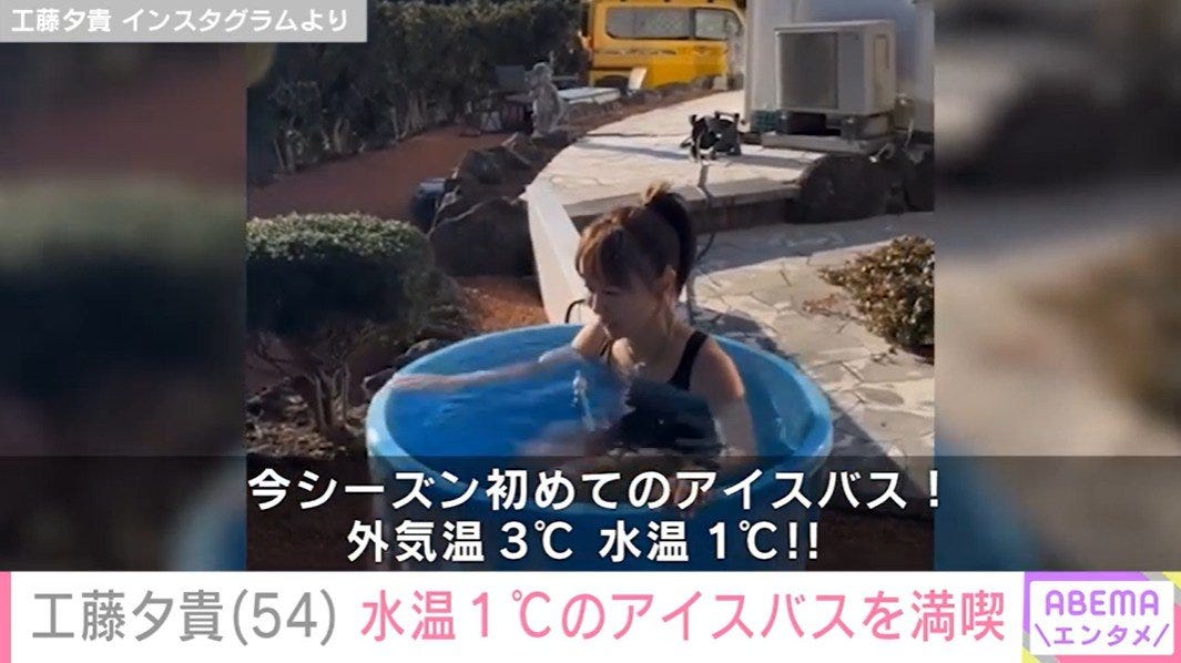 工藤夕貴(54)、水着で水温1℃のアイスバスを満喫する動画を公開「胃腸とかは大丈夫なのですか?」「風邪ひかないで」と反響