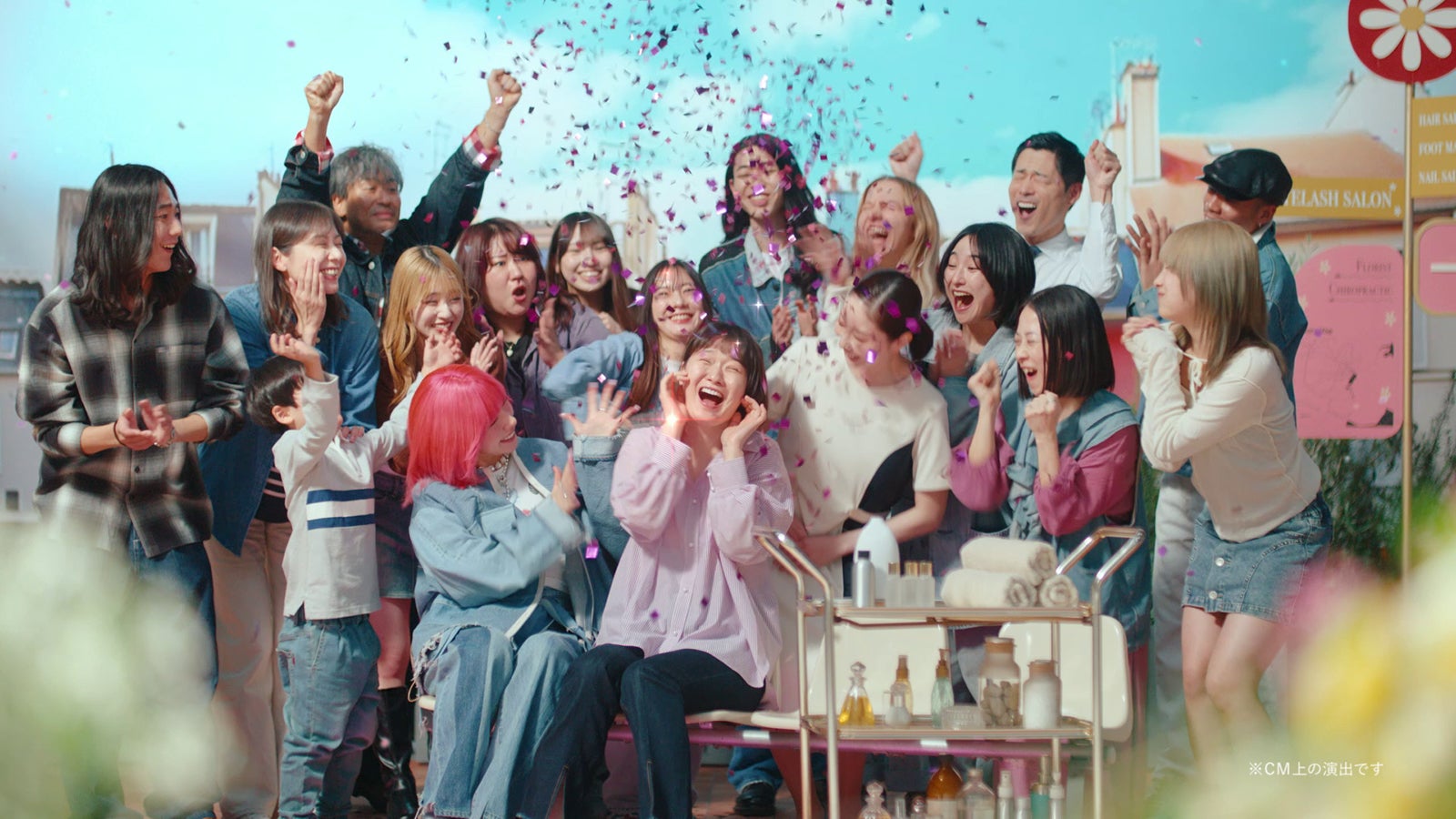 さらに、今回のCMはピンクヘアに変身した仲や、それぞれのビューティーを楽しむ人たちをみんなで祝福するエキストラの人々とのハッピーな共演シーンも見どころ。老若男女幅広い世代の、約30人の演者が集まり、その中には元気な5歳の男の子の姿も。撮影の合間には、仲のきれいなネイルや重ね付けしたアクセサリーに興味津々な様子も見られた。大人数で息を合わせる難しい撮影ではあったが、共演者同士での交流も楽しみながら、和やかな雰囲気で撮影は進行した。(modelpress編集部)