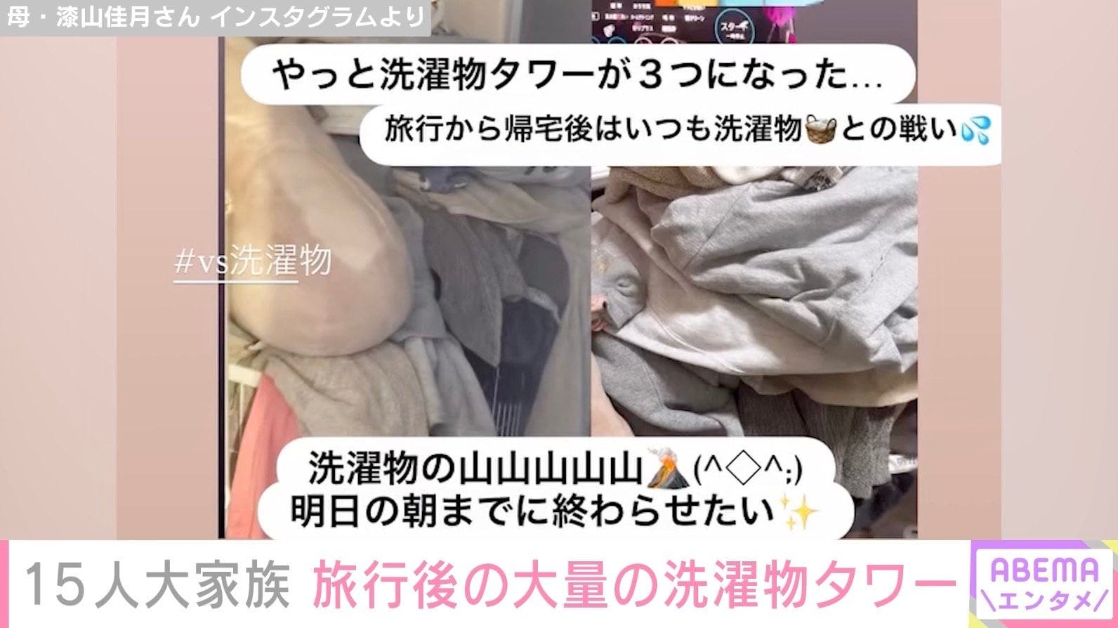 6男7女15人大家族「うるしやま家」母親・佳月さん、旅行後の大量の“洗濯物タワー”公開「朝までに終わらせたい」
