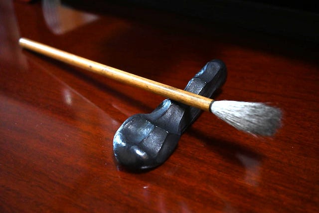 奈良市内に8つある墨工房のひとつ、錦光園では、「にぎり墨」と呼ばれる体験を行っています。