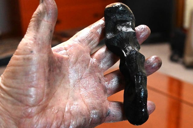 参加者はサラダ油を手に塗って、ほんのり温かい生墨を手のひらに乗せ、指全体で包み込むように握ります。形は整えすぎず、力の入り方もそのまま。