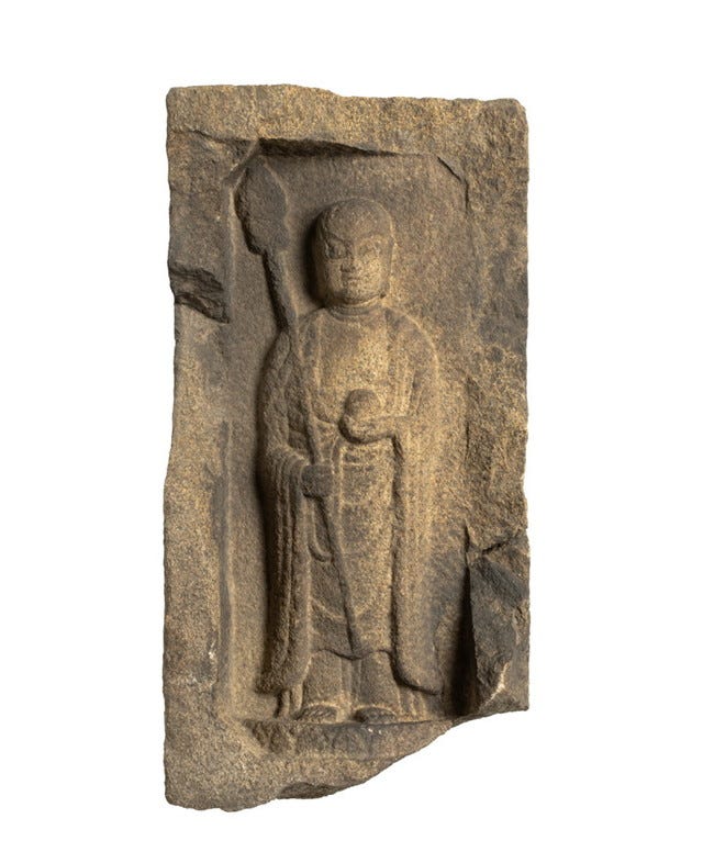 天守台石垣転用石仏/天守台の石垣で、実際に使われていた転用石材。石垣の解体修理をした際に、新しい石材と交換したもの。 秀長と郡山のあゆみ