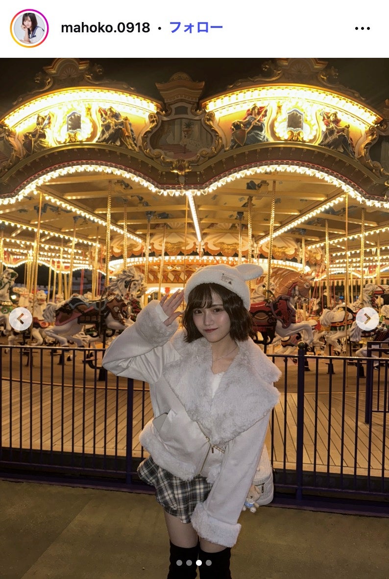 瀬乃は、メリーゴーランドを背景に夜のオフショットを4枚投稿。白を基調としたアウターにチェック柄のミニスカートと黒のロングブーツを合わせて、引き締まった美しい脚がのぞく冬らしいスタイリングを披露している。瀬乃真帆子の投稿に反響