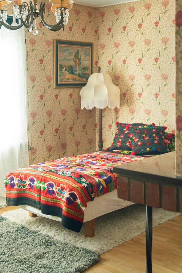 「北欧のテキスタイルと暮らし展 ― Beauty for All ―」では、北欧スウェーデンとフィンランドのテキスタイル約90点が集結。マリメッコのヴィンテージや、19世紀の手工芸から20世紀のアートまで時代とともに移り変わる織物を展観。ミッドセンチュリー期のプリントテキスタイルの名作が、ヴィンテージプリントで並びます。