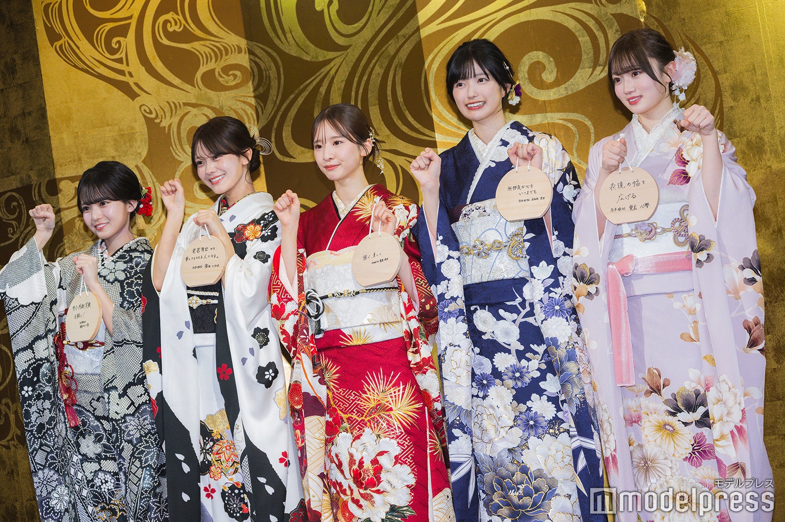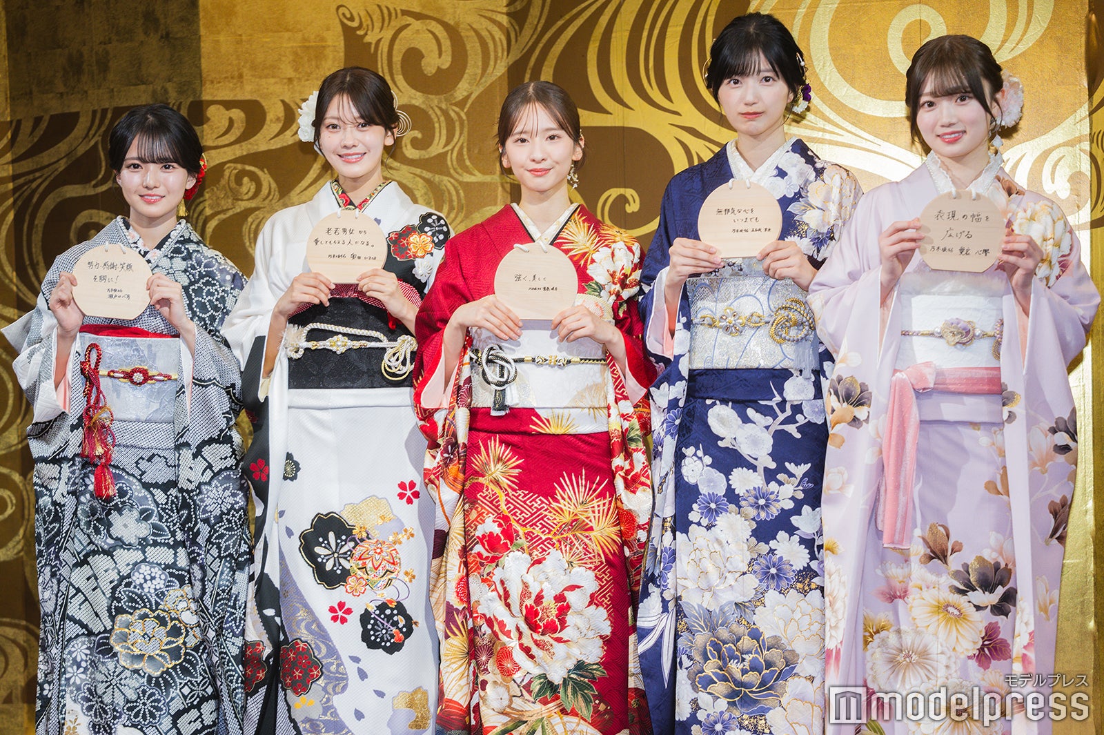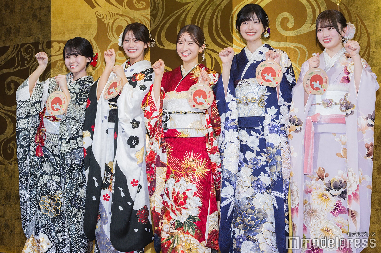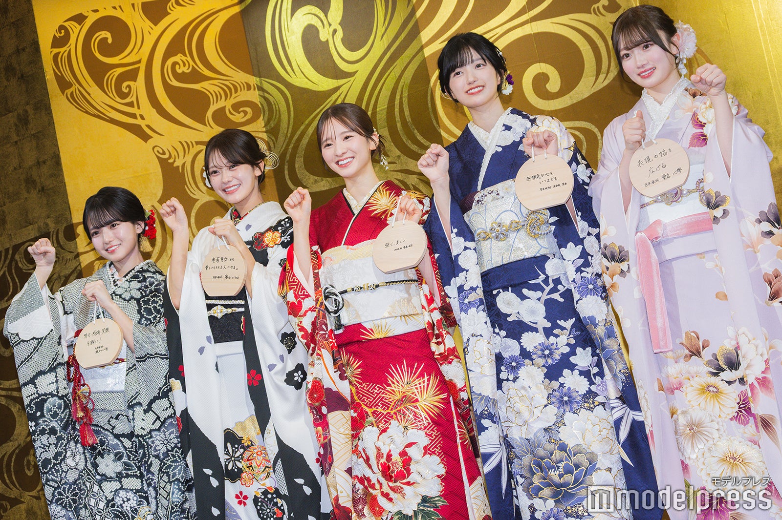 今回、成人式に参加したのは、2025年4月2日から2026年4月1日までに20歳を迎えるメンバー5人。内訳は、2022年2月にグループに加入した5期生から3人、2025年2月に加入した6期生から2人となった。5人はこの日、華やかな色柄の振袖に身を包み、晴れやかな表情で報道陣の前に登場。神主に先導されて鳥居をくぐり、厳かな空気に包まれた石畳を進んで本殿へと向かった。本殿での祈祷を終えると、再び姿を現し、それぞれの願いを込めた絵馬を手に、晴れの日にふさわしい和やかな雰囲気の中でフォトセッションに臨んだ。(modelpress編集部)