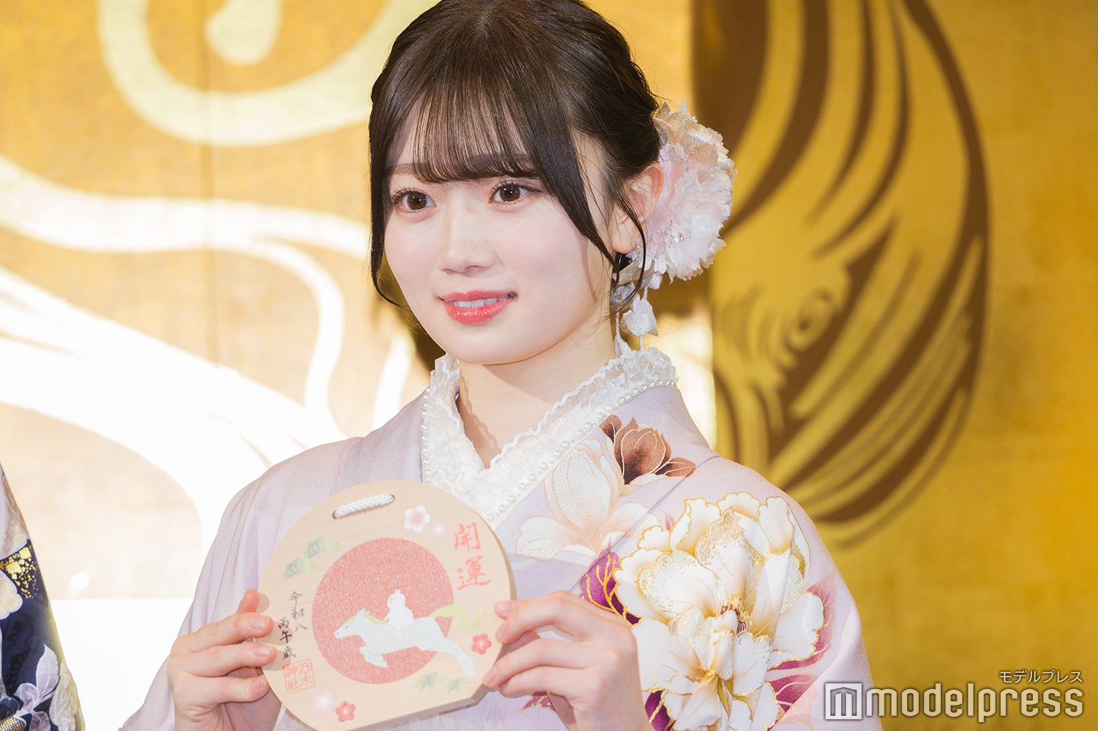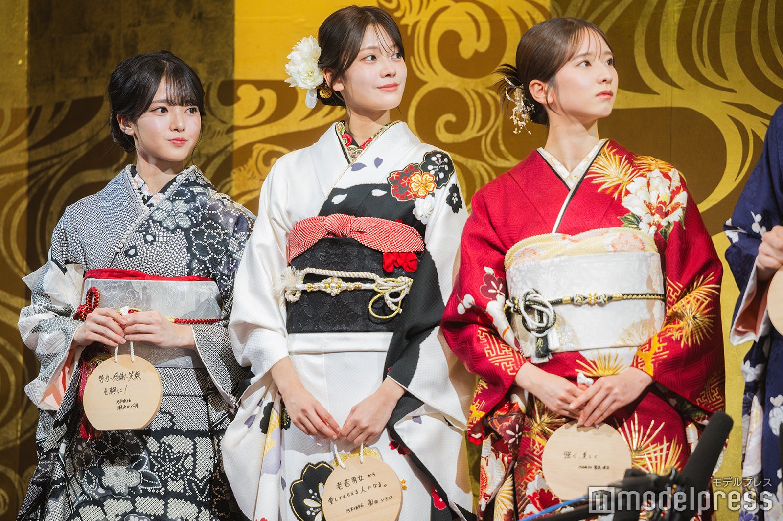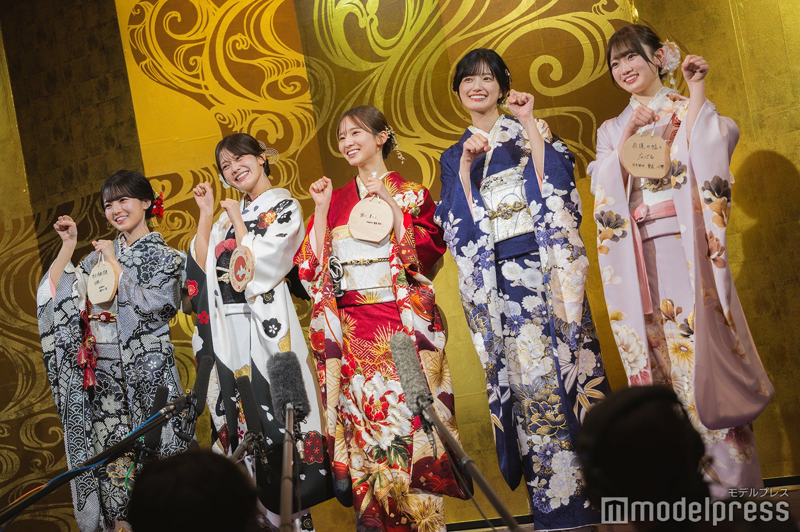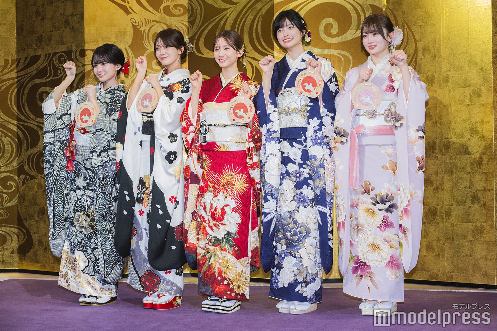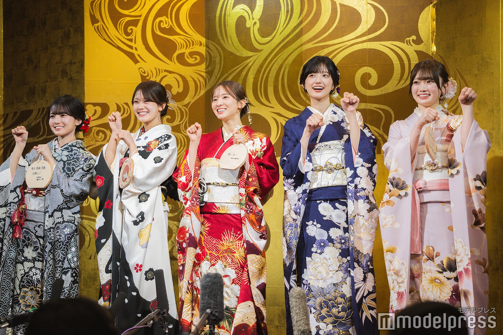 今回、成人式に参加したのは、2025年4月2日から2026年4月1日までに20歳を迎えるメンバー5人。内訳は、2022年2月にグループに加入した5期生から3人、2025年2月に加入した6期生から2人となった。5人はこの日、華やかな色柄の振袖に身を包み、晴れやかな表情で報道陣の前に登場。神主に先導されて鳥居をくぐり、厳かな空気に包まれた石畳を進んで本殿へと向かった。本殿での祈祷を終えると、再び姿を現し、それぞれの願いを込めた絵馬を手に、晴れの日にふさわしい和やかな雰囲気の中でフォトセッションに臨んだ。(modelpress編集部)