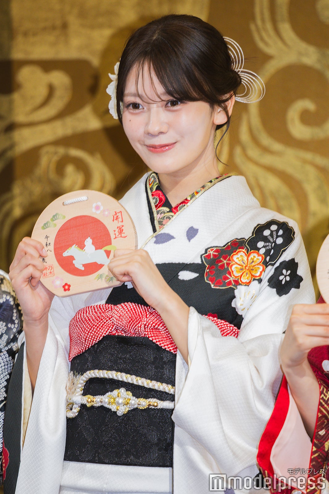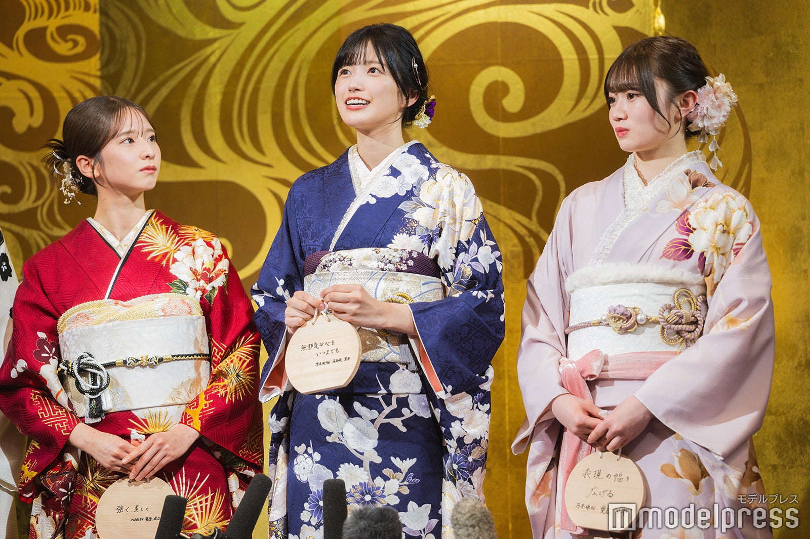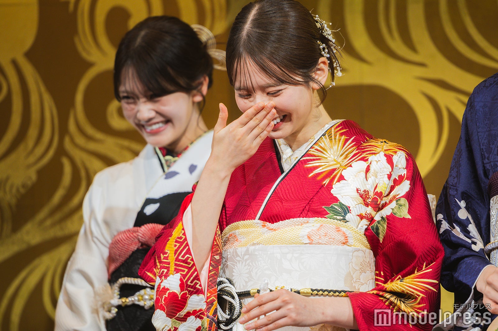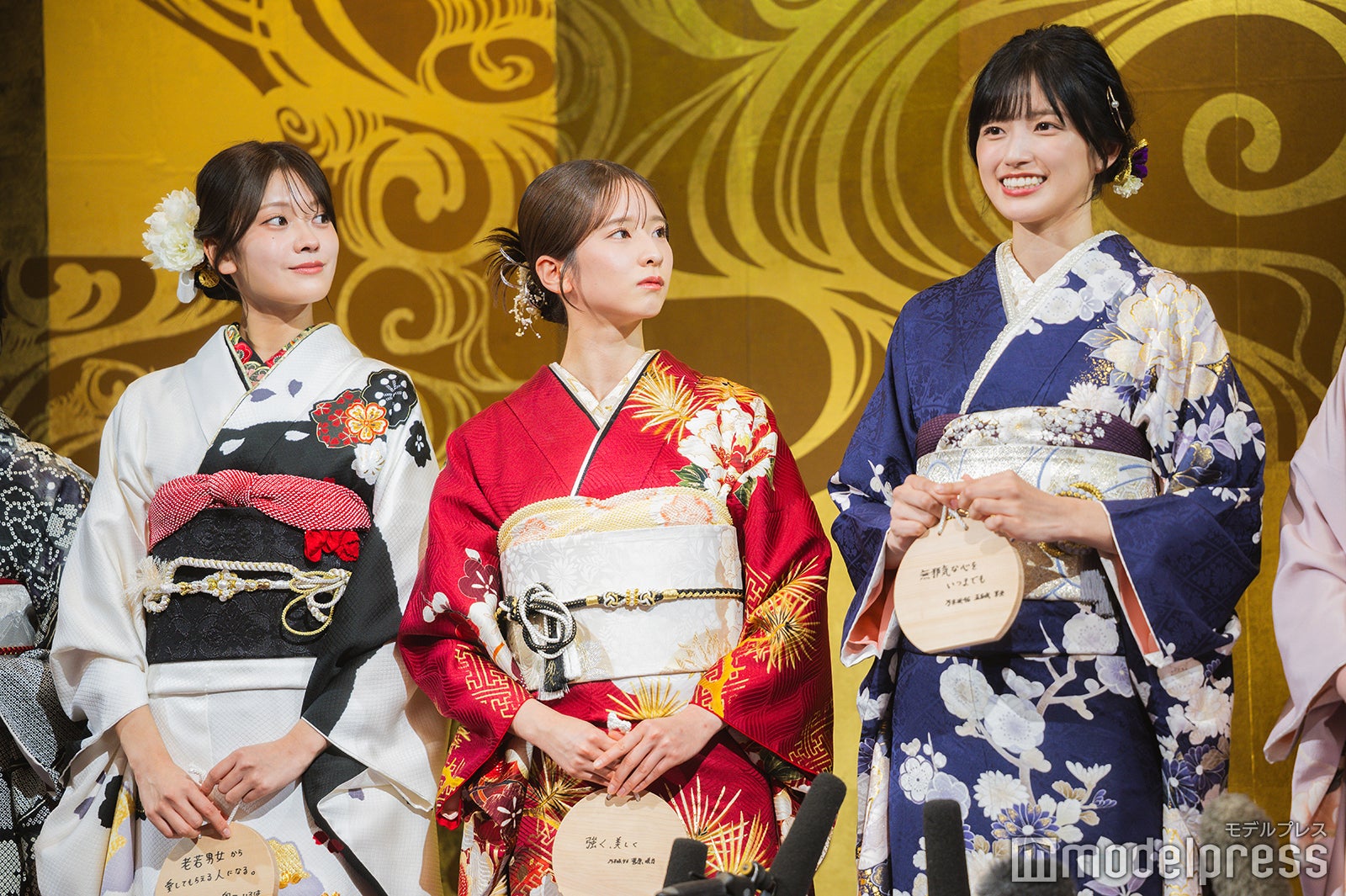 今回、成人式に参加したのは、2025年4月2日から2026年4月1日までに20歳を迎えるメンバー5人。内訳は、2022年2月にグループに加入した5期生から3人、2025年2月に加入した6期生から2人となった。5人はこの日、華やかな色柄の振袖に身を包み、晴れやかな表情で報道陣の前に登場。神主に先導されて鳥居をくぐり、厳かな空気に包まれた石畳を進んで本殿へと向かった。本殿での祈祷を終えると、再び姿を現し、それぞれの願いを込めた絵馬を手に、晴れの日にふさわしい和やかな雰囲気の中でフォトセッションに臨んだ。(modelpress編集部)