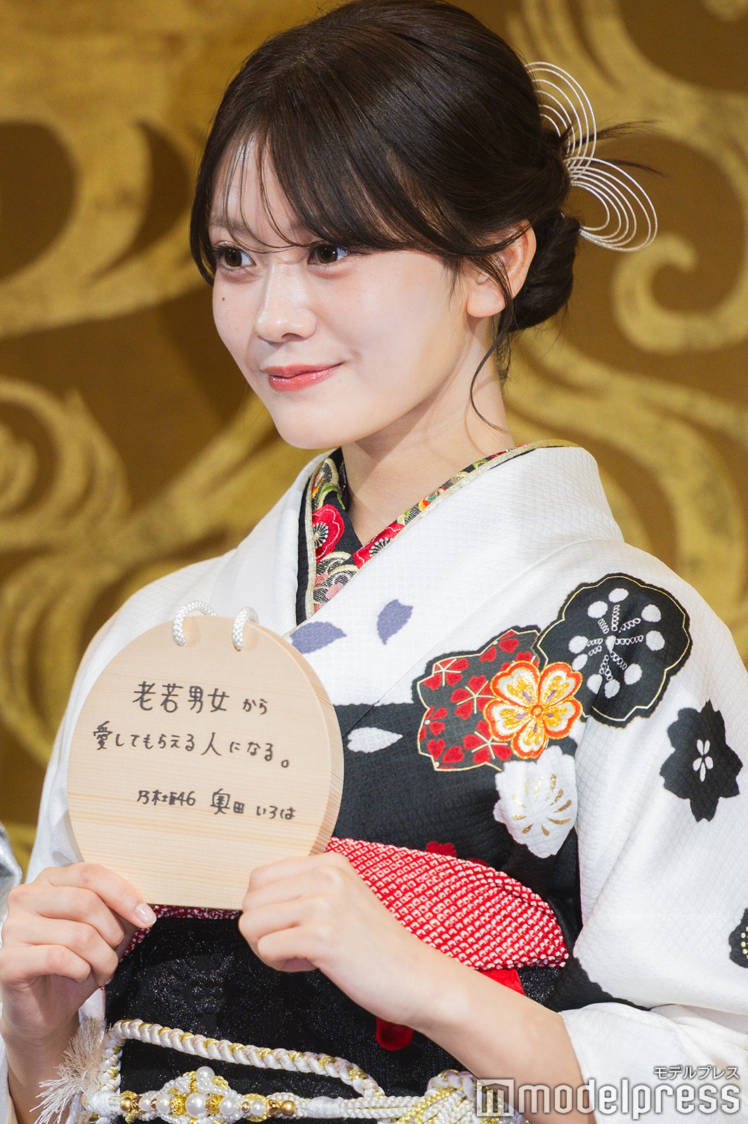 乃木坂46で2026年に新成人を迎えた5期生の五百城茉央、奥田いろは、菅原咲月、6期生の瀬戸口心月、愛宕心響が8日、ゆかりのある東京・乃木神社で成人式を実施。囲み取材では、奥田が絵馬に込めた思いや、お酒にまつわるエピソードを明かした。